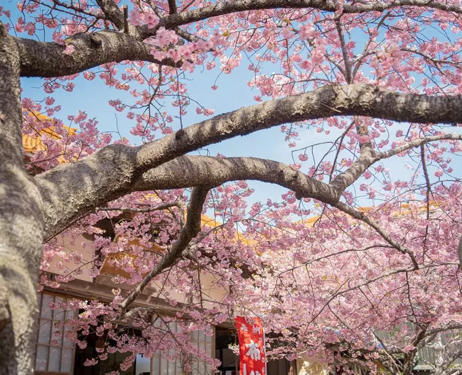 例年2月中旬から3月上旬頃には、河津桜「てんれい桜」が美しく咲き誇ります。6月になると寺の周辺一面にあじさいの花が咲き乱れ、まるで「あじさいの中に寺」があるかのように見えることから、誰言うとなく「あじさい寺」と呼ばれている。
