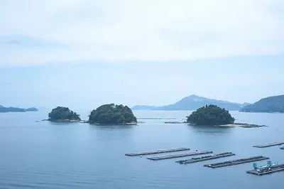 穏やかな鳥羽湾内に、飛び石のように浮かんだ3つの小島は三ツ島といわれ、昔から鳥羽の名勝として親しまれています。