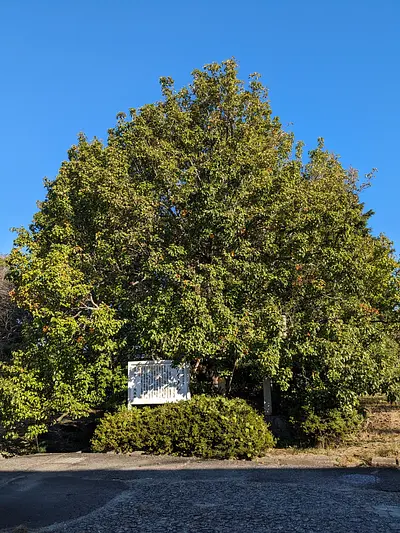 府南寺の東門すぐ前にあるバラ科の落葉高木。 イヌナシと栽培ナシの中間のものといわれおり、その種子はほとんど発芽せず、植物学上非常に珍しい植物とされています。 このアイナシの木は日本で2番目に発見されたものといわれています。 真ん中から太い木株が何本も株別れして、春には真っ白の花が重なり合いながら咲き乱れます。 1972(S47)年4月1日に県の天然記念物に指定されました。