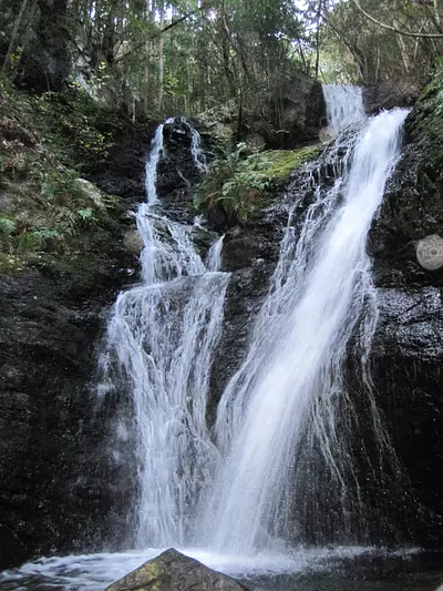 古和浦の不動の滝は、かつて修験者たちが修業をし願掛けをおこなったといわれていて、傍らに不動明王を祀る小さな祠があります。雄滝と雌滝の2本の滝が下の方で1本になっています。国道260号線から滝までの距離は遠いのですが、「不動の滝まで500m」という看板のところまで車で行くことができます。 ☆南伊勢エリアの最新情報は町公式インスタグラムで毎日更新中です https://www.insta...