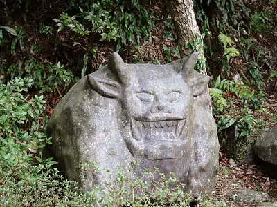 押渕には鬼ヶ城と呼ばれるところがあり、そこには鬼が住んでいたと言われる洞穴があります。 この鬼については様々な言い伝えがあり、「昔ここに一人の賊が住んでいたが、人肉を食べていた事が分かり、酒に酔って寝ているところを土地の人が焼き殺してしまった。」などと言われています。 近くには白滝や鬼の像があります。また、この鬼ヶ城はシダ植物が有名で天然記念物にも指定されています。 ※滝付近は天候や時...
