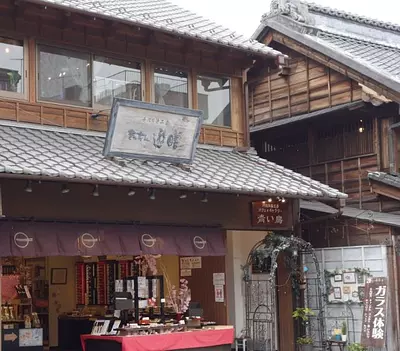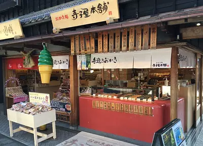 おはらい町にある"おかき"の専門店です。 軒先には目移りしてしまうほど様々な種類のおかきが並んでいます。
