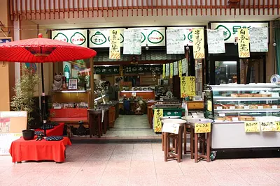 夫婦岩参道沿いで、大正15年から続く和菓子店。看板商品「岩戸の塩ようかん」は、伊勢二見の海から汲み上げて作られた塩と上質な小豆で丁寧に練り上げられた逸品。ぜひお立ち寄りください。