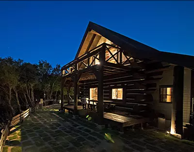 サーフィンスポットとして人気の志摩市安乗町に佇む、自然に囲まれたおしゃれなログハウスです。