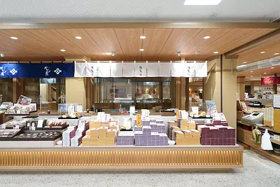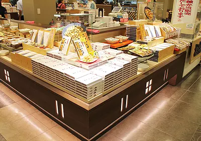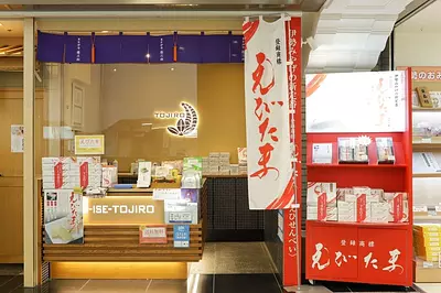 宇治山田駅構内で、海老の上品な香りと深い旨みを味わえる海老煎餅「えびたま」などを販売しています。伊勢のお土産にぜひお買い求めください。