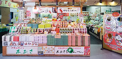 伊勢シーパラダイス併設された「伊勢夫婦岩めおと横丁」内にあるお土産屋さん。伊勢海老入りの煎餅など地元の商品をお買い求めいただけます。