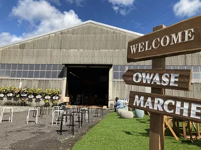 雑貨店やカフェが併設された複合施設。1点ものの手作り雑貨などが購入できるショップが並びます。ショッピングの後は、カフェでランチやおやつをどうぞ。