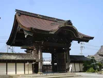 如来堂の正面に建つ門で、文化6年(1809)に木挽きが始まり、文政10年(1820年)に地築き、天保15年(1844)に棟上げをしている。 屋根は檜皮葺で、正面と背面の軒に大きな唐破風があることから唐門と呼ばれる。控柱4本が腰長押から下で、斜め外に踏み出した形になっているのは注目される。材料はすべて欅造りで、厳しく吟味された品位の高いものを入念に施工している。腰長押と飛貫との間、扉、そ...