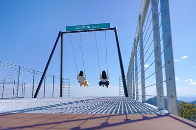 2025年10月31日に新登場!御在所岳頂上に新たに登場したCOCORU テラス(ココルテラス)には、山頂からの絶景が楽しめるテラスやデッキ、そして注目の絶景ブランコが設置された、話題の新スポット。 ブランコは展望テラスの先端に設置されており、開放感や山頂からの風景楽しむことができる、まさに山頂の絶景ブランコ! 紅葉シーズンはブランコを楽しみながら、山の紅葉を楽しむことができますよ。子ど...
