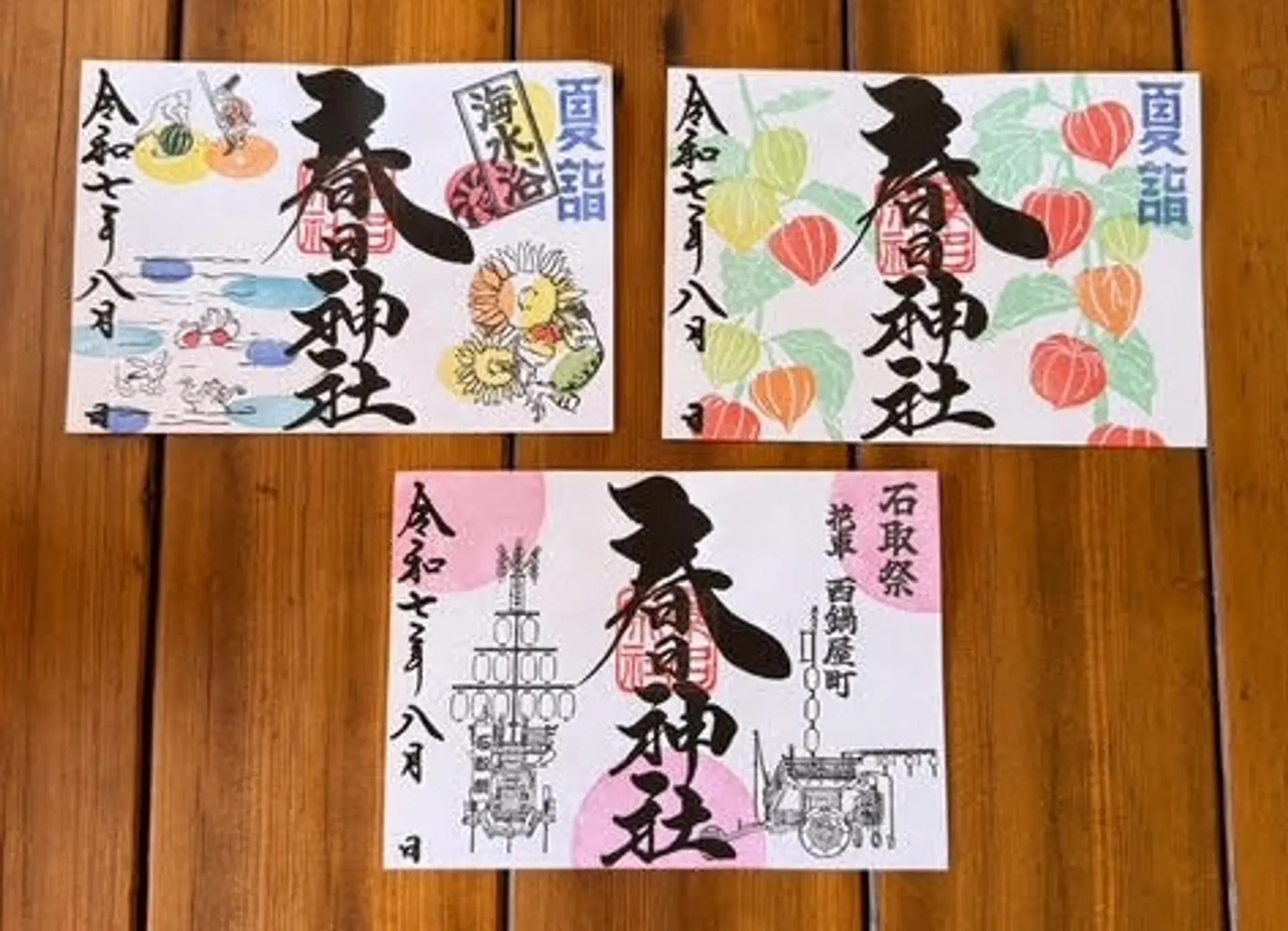 御朱印テーマ 『鬼灯(ホオズキ)』『鳥獣戯画の海水浴』『石取祭【西鍋屋町】』