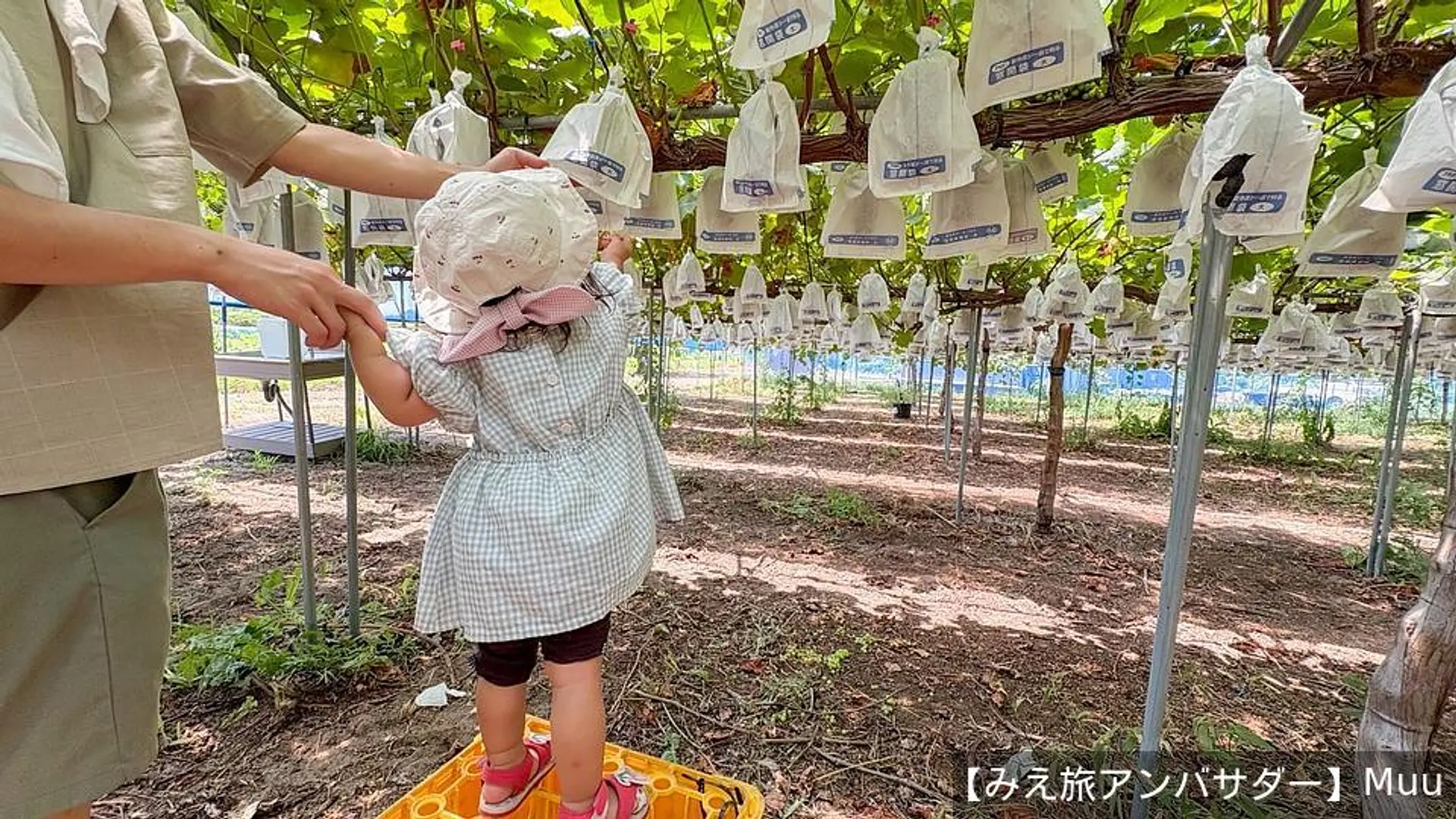 ※収穫は食べる分だけ、1房ずつお楽しみください。味見で1粒だけ食べるなどの行為は厳禁です。また、ゴミは畑に捨てず、専用のゴミ袋に捨ててください。
