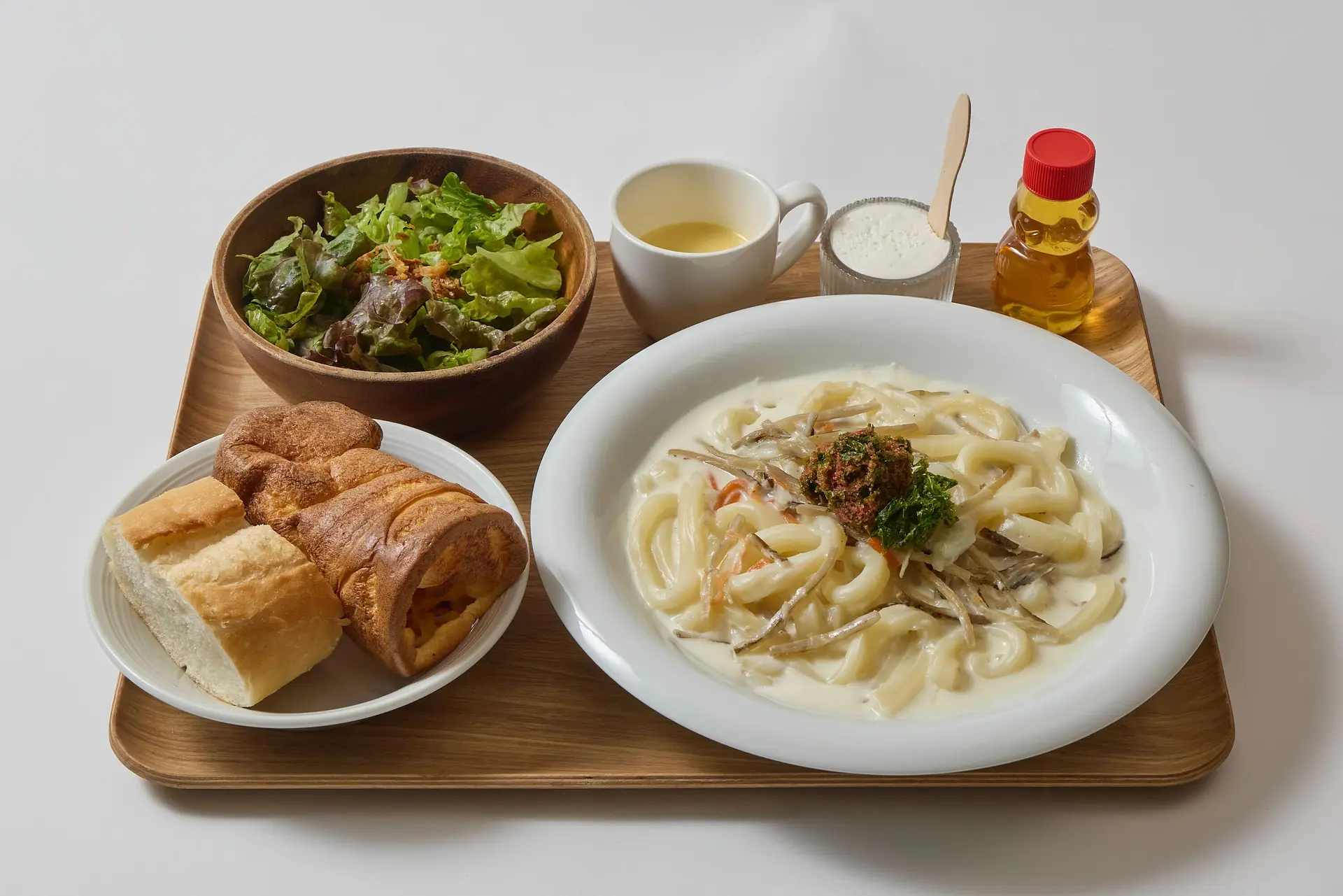 【伊勢志摩】伊勢うどんと根菜の和風クリーム 明太あおさ添え