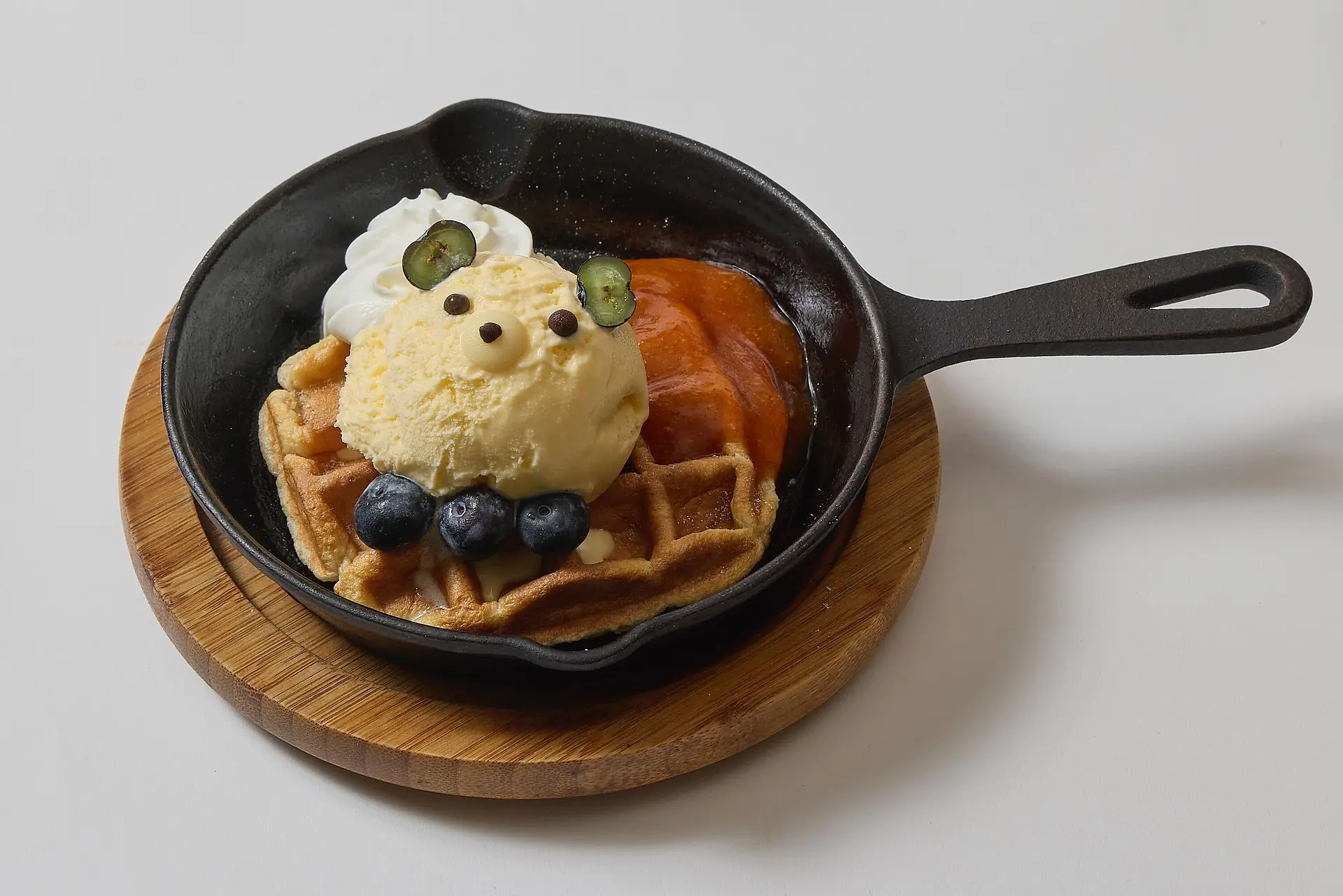【美村】ブルーベリーのもっちりワッフル くまちゃんアイスのせ