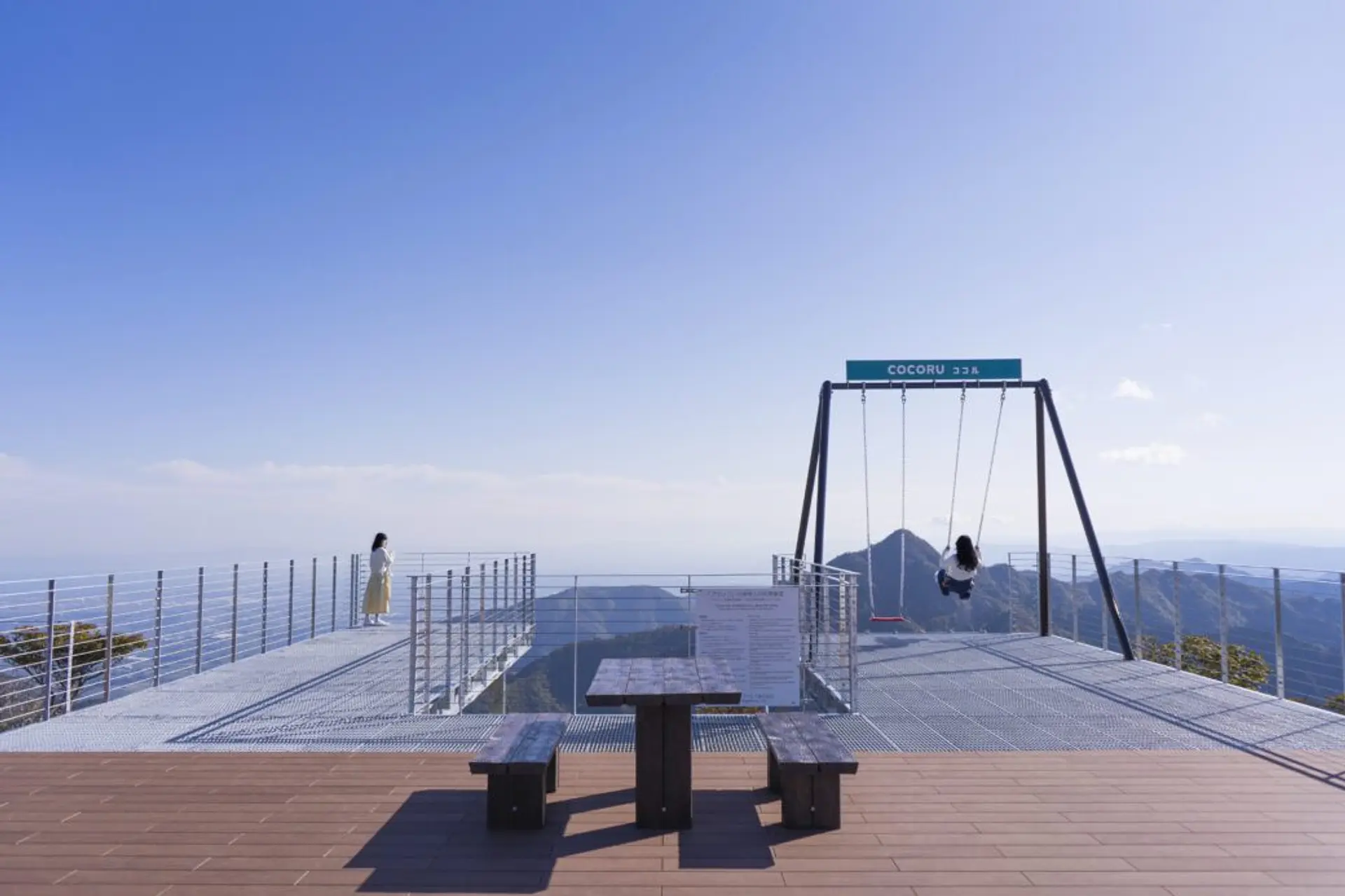 御在所の頂上に誕生した「COCORU(ココル) テラス」は展望テラス・ブランコ、ウッドデッキの総称です。