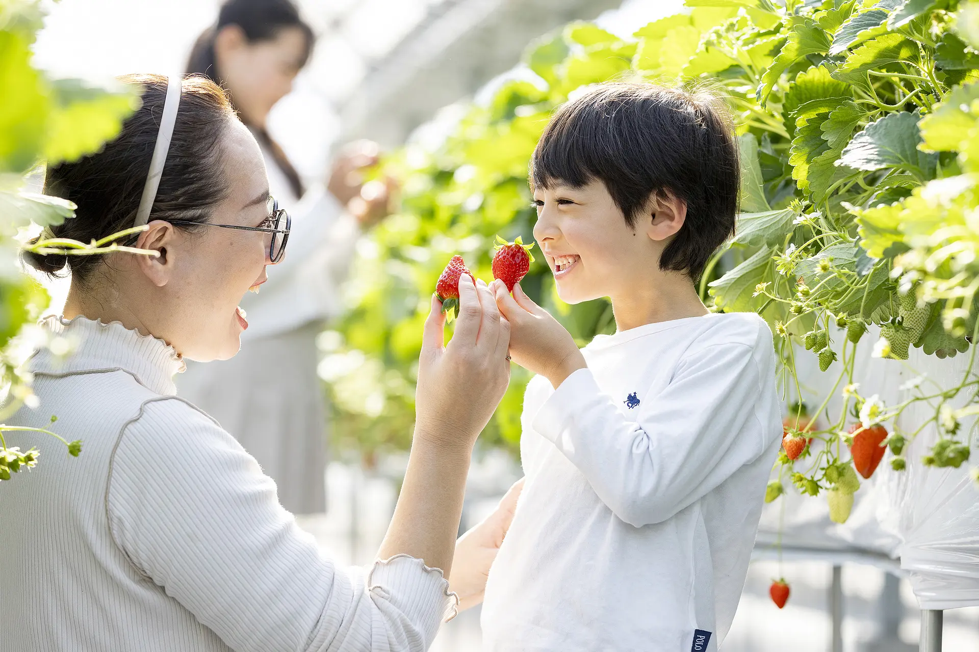 いちごのみずみずしい香りに包まれながら、摘み立てのいちごを40分食べ放題でいただけます。