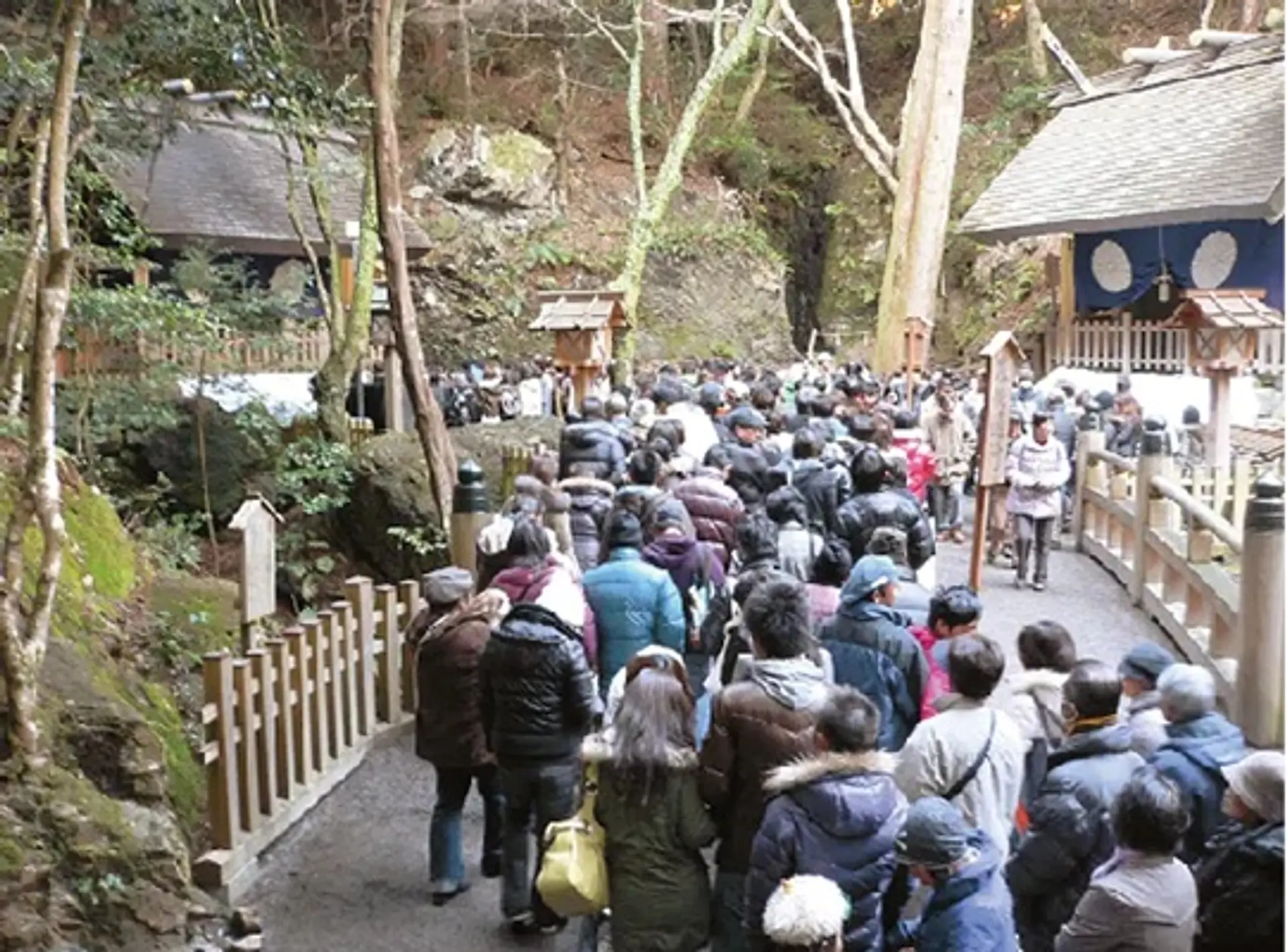 古くより神宮参拝の前に二見浦の海水で心身を清める禊をする「浜参宮」という習わしがあり、現在でもまず神社に参拝し、お祓いを受けてから神宮へ向かう参拝者で賑わいます。