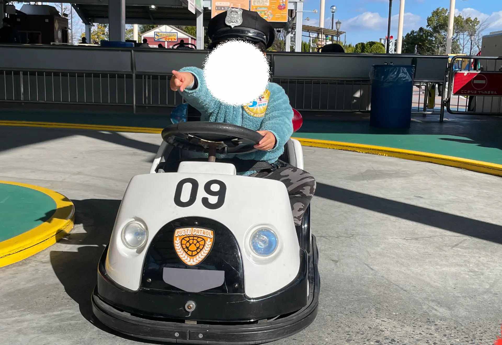 写真3枚目~4枚目のプッチパトロールも3歳になったら乗れるアトラクション!しかも1人で運転できるとあって乗り物大好きな息子は、大興奮!「出発進行!レッツゴー!」などと声を出していました。