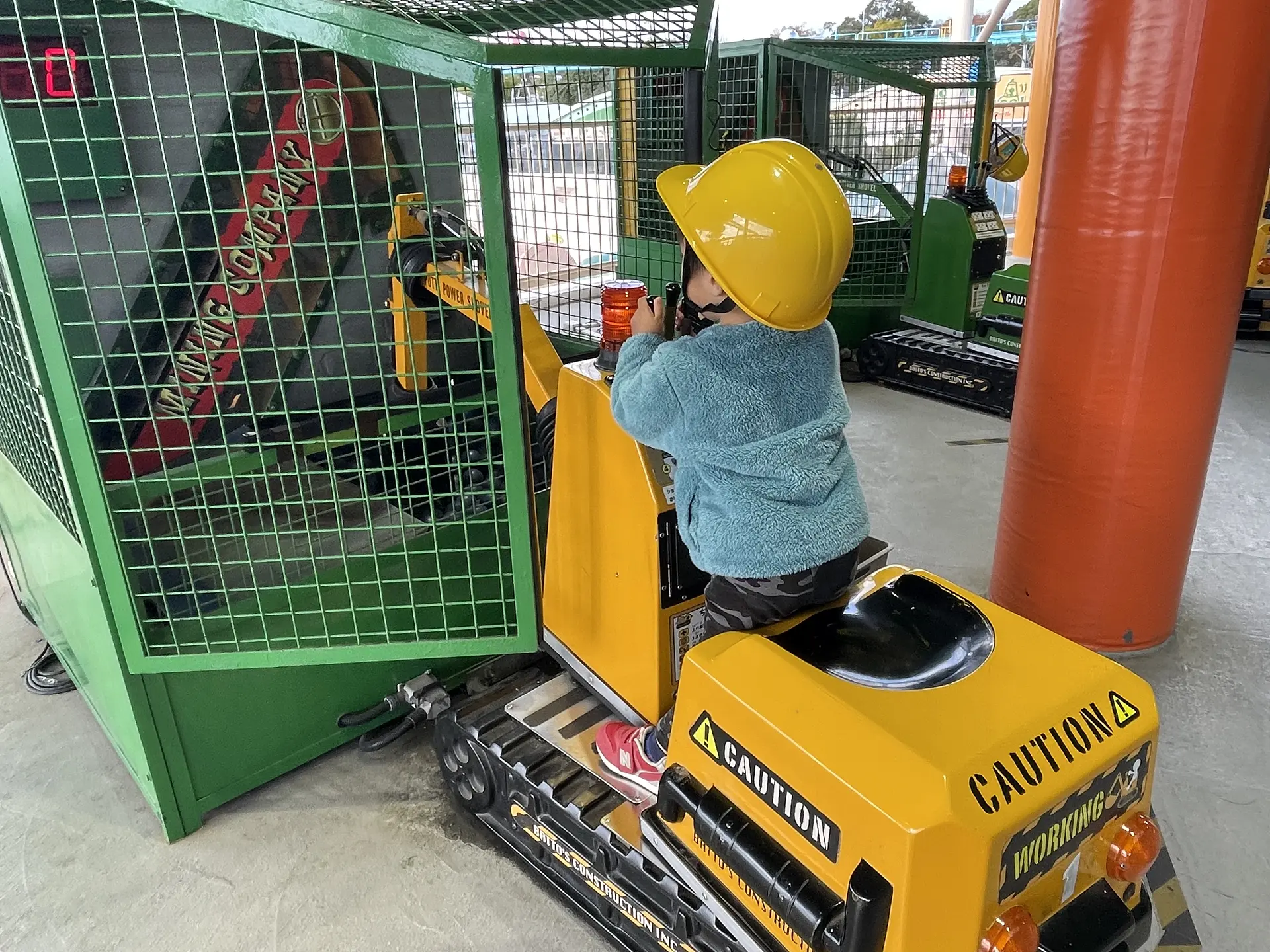 それと前回行ったときと変わっていたのが、アトラクションにそれぞれなりきり帽子が増えていたこと!ショベルカーを運転するところにヘルメットがあったり、電車の運転するところに運転手さんの帽子があったり、飛行機にもかっこいい帽子がありました。子どもが喜ぶポイントをしっかりおさえている鈴鹿サーキットパークならではの進化です!