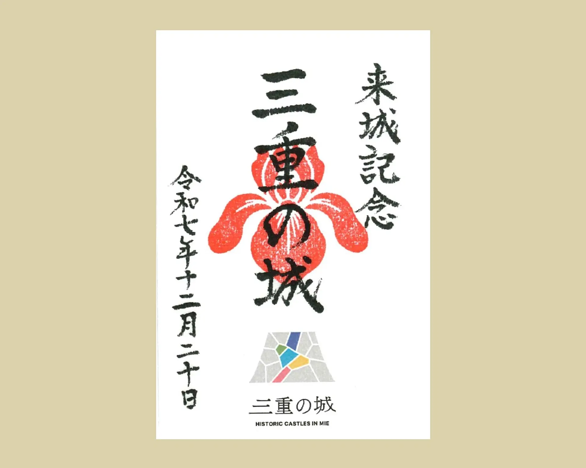 • 「三重の城」ロゴを使用し、三重県の花「花しょうぶ」をモチーフにした御城印