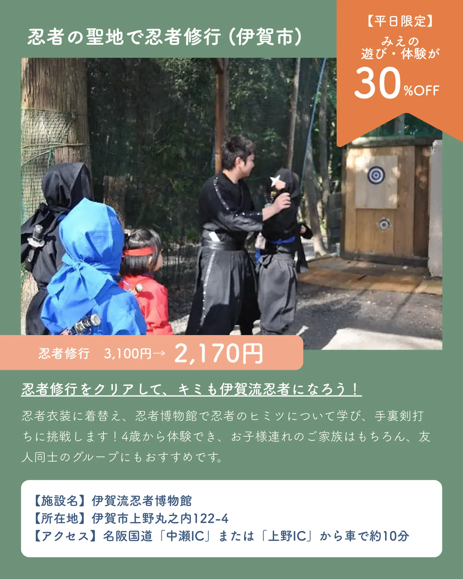 こちらも参考にして、このお得な機会に、ぜひ三重の遊び・体験を遊び尽くしてください!