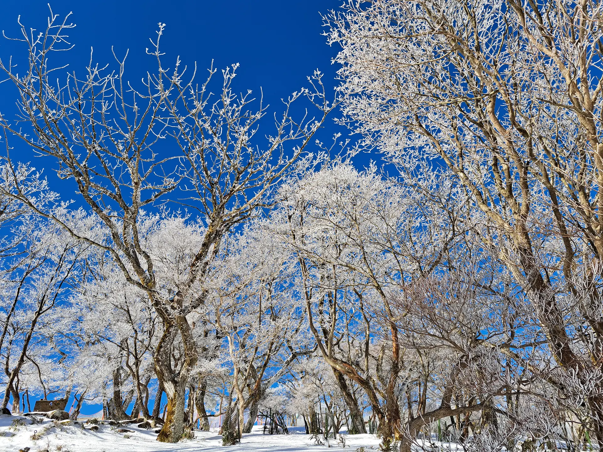 霧氷とは、氷点下に冷やされた水蒸気や霧の粒が樹木にくっついてできる氷のことで、樹木に真っ白い小枝や華が咲いたようになり、美しい白い木々が見られます。