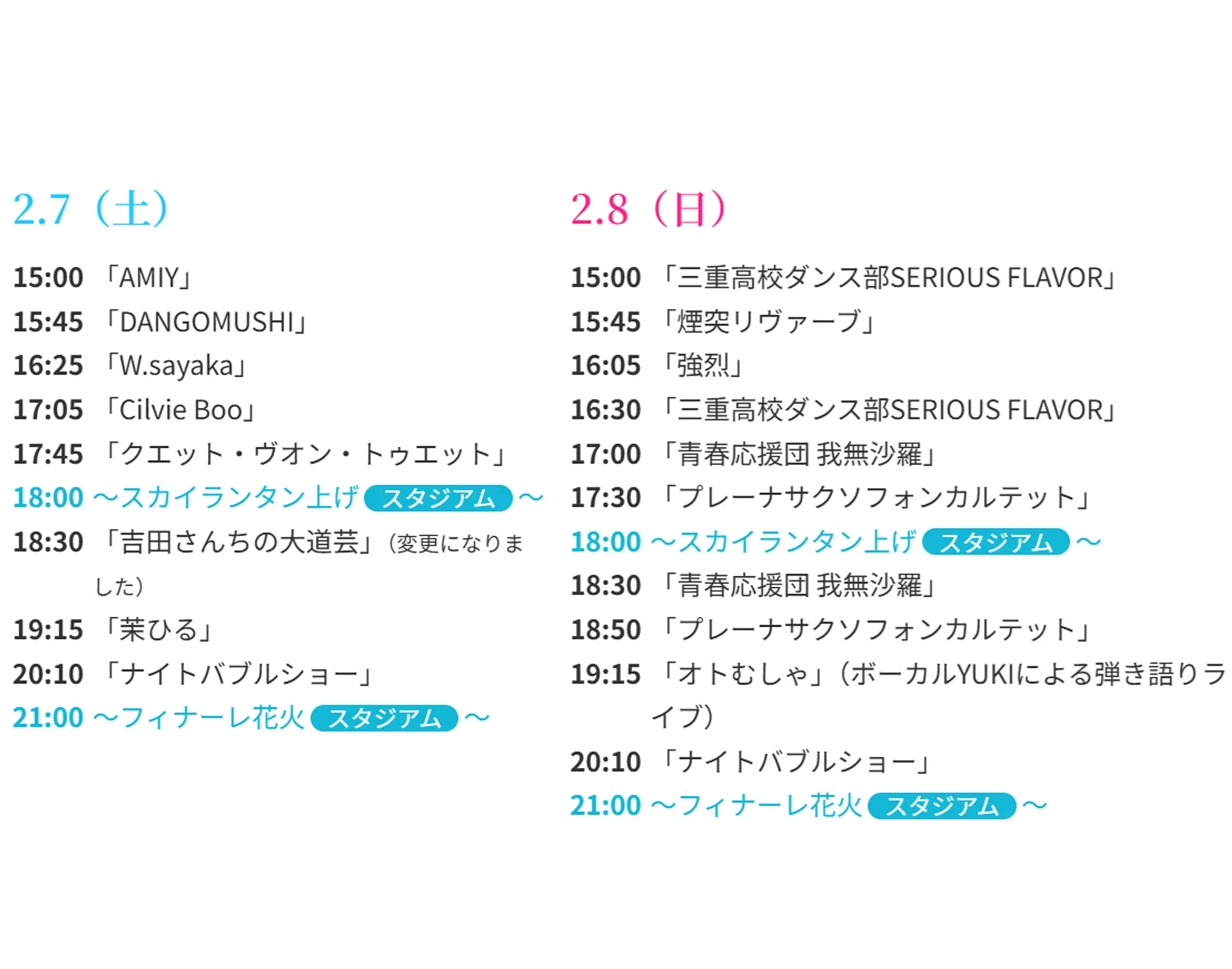 - 日程: 2月7日分 / 2月8日分
