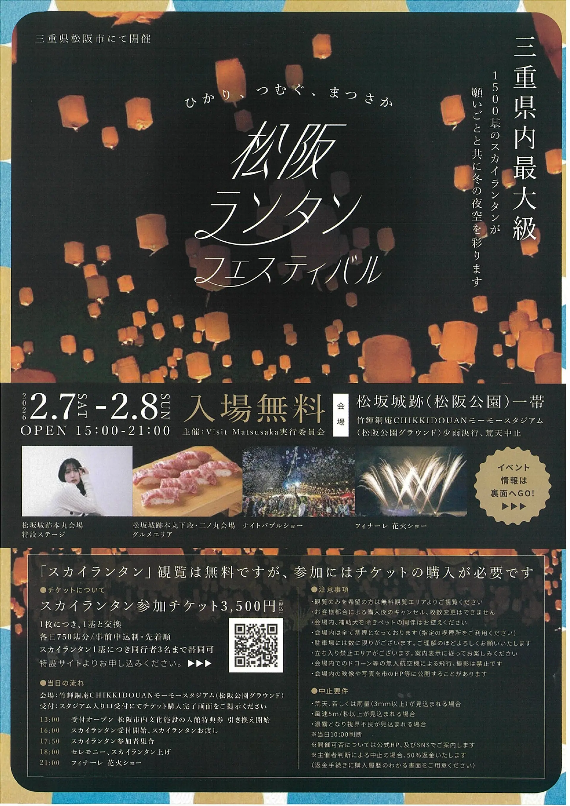 2日間で合計1,500基のスカイランタンが松阪の夜空を彩る、三重県最大級のランタンイベント。