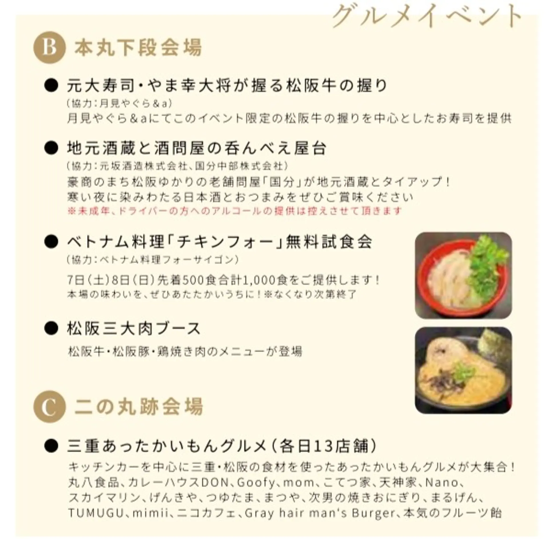 - 三重あったかいもんグルメ大集合!: 三重・松阪の食材を使ったキッチンカーが各日13店舗集結!