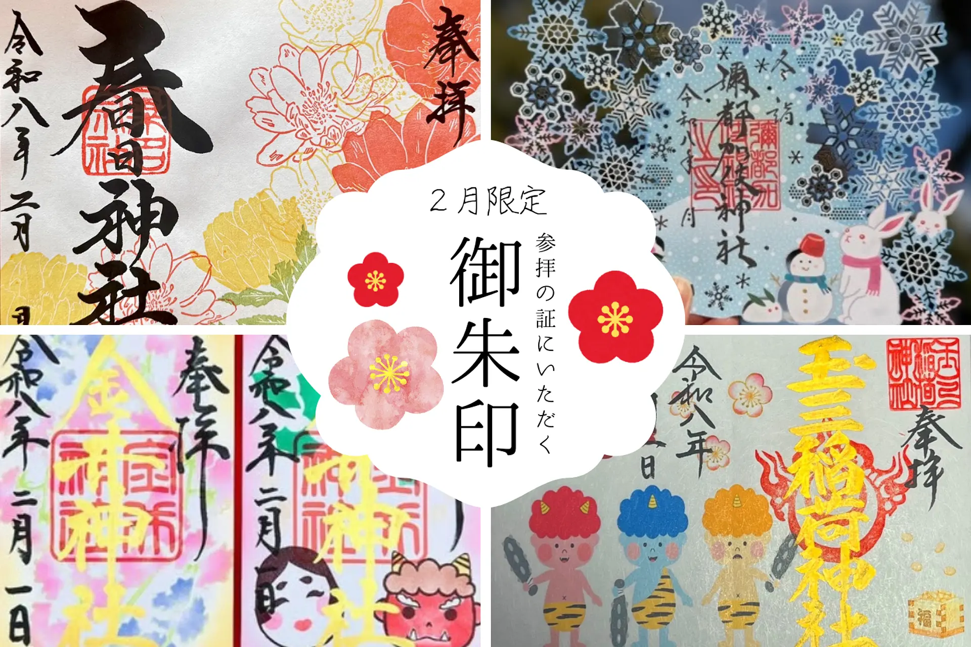 春の訪れを告げる梅の花や、福を呼ぶ節分。三重県の寺社で今しかいただけない、色鮮やかで愛らしい「2月限定御朱印」の頒布が始まりました。