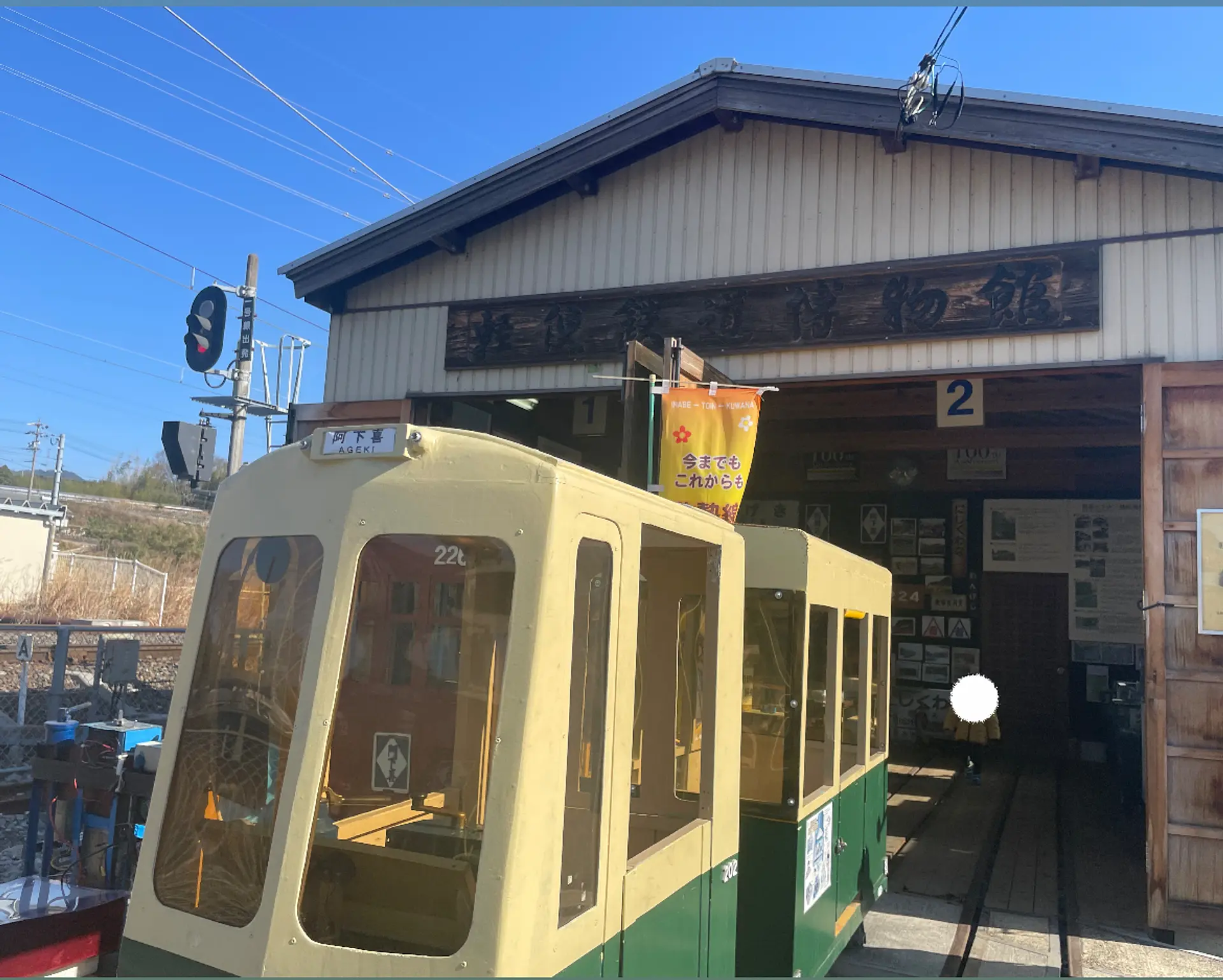 三岐鉄道北勢線阿下喜駅から徒歩1分。というか、もう電車を降りたらホームから見えてました!軽便鉄道博物館!