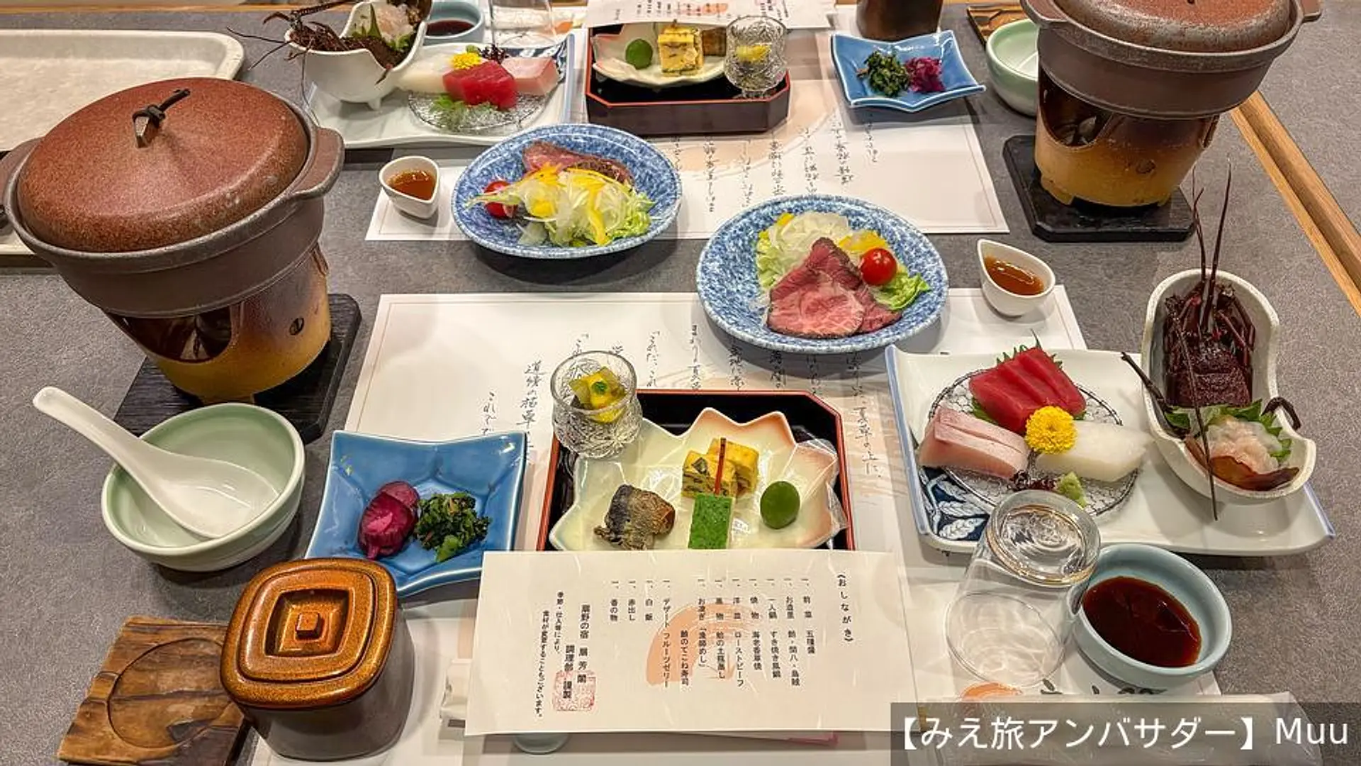 夕食は、伊勢志摩の食材を取り入れた会席料理。見た目にも美しく、落ち着いて食事を楽しめます。朝食は和洋バイキング形式で、伊勢志摩の郷土料理などを楽しむことができます。家族それぞれの好みに合わせて選べるのが魅力です。