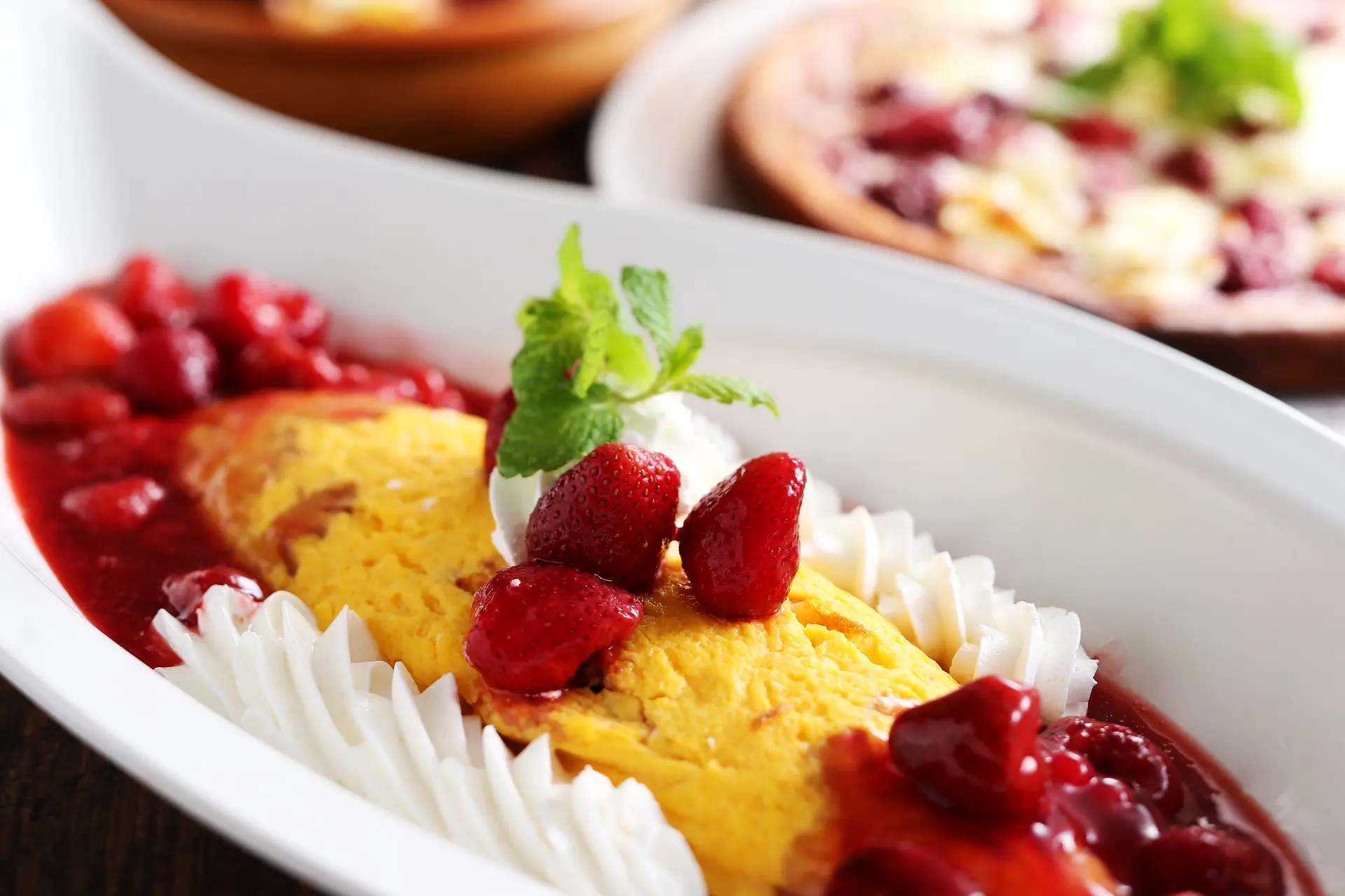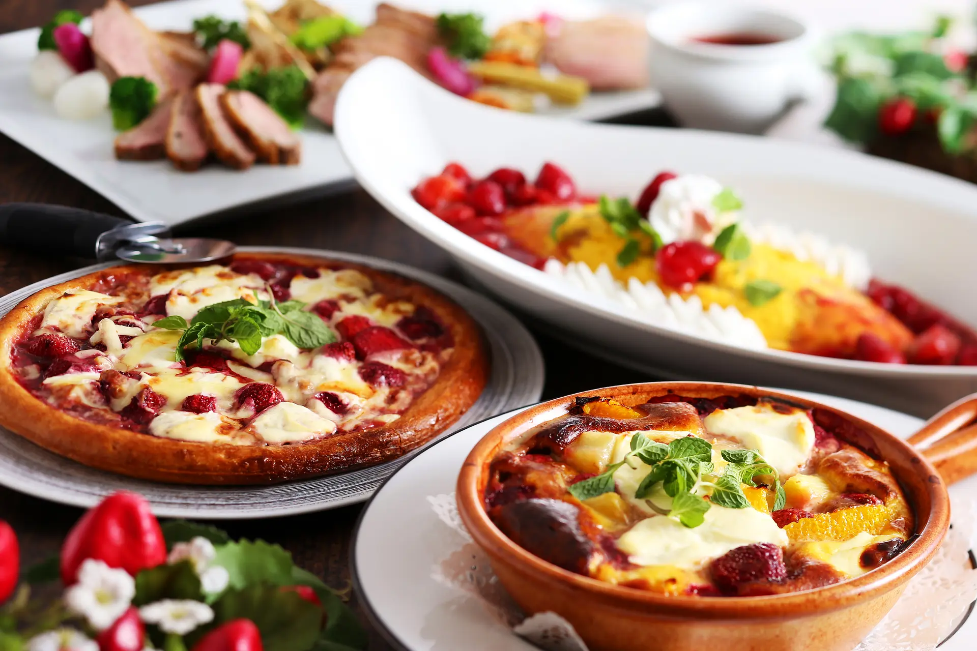 旬のいちごをふんだんに使用した創作料理やスイーツ