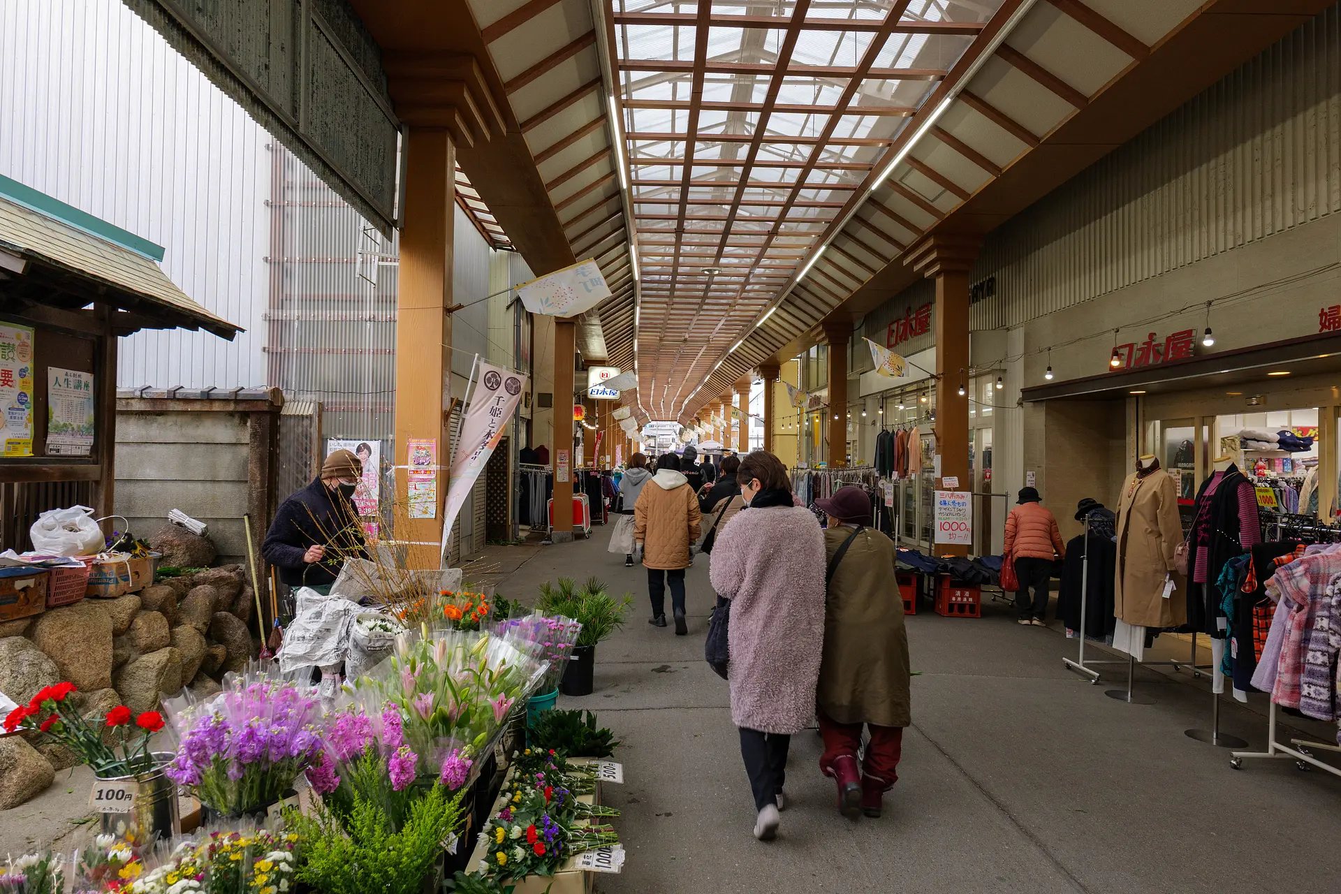地元農家直送のみずみずしい野菜や果物、伊勢湾の恵みが詰まった鮮魚が所狭しと並びます 。店主との「今日のおすすめは何?」なんて会話を楽しみながら、お値打ち食材をゲットできるのも朝市ならではの醍醐味です 。取材当日はあいにくの雪模様でしたが、全蓋式アーケードのおかげでお買い物はとっても快適! 厳しい寒さの中でも多くの買い物客の集まる様子に、三八市が愛される理由を感じることができました。ぜひ、心もお腹も満たされるお買い物体験をしてみてくださいね。