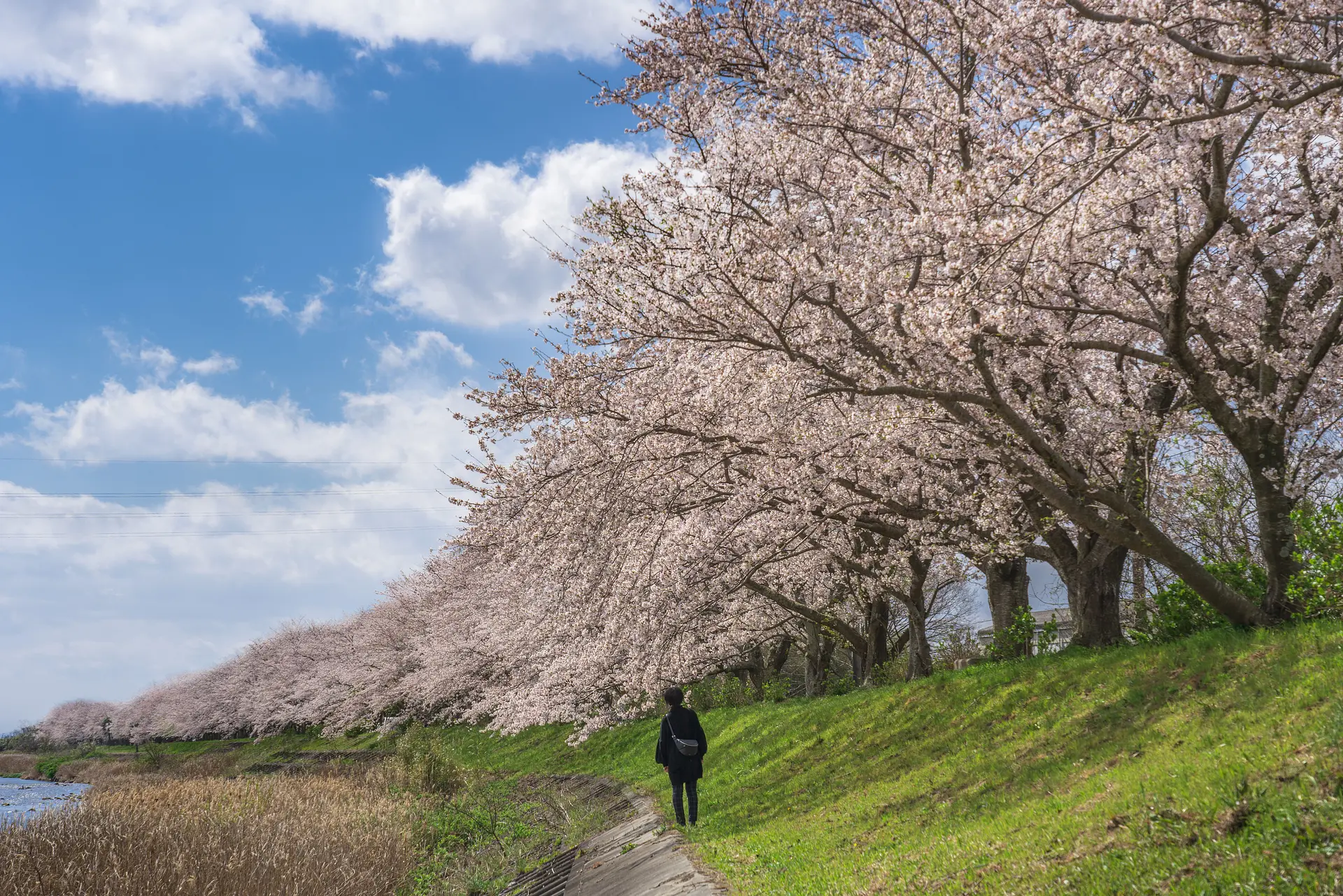 伊勢市を流れる宮川の河川敷で約1.5kmに渡って咲き誇る桜並木。日本さくら名所100選にも選ばれており、約700本の桜を楽しむことができます。
