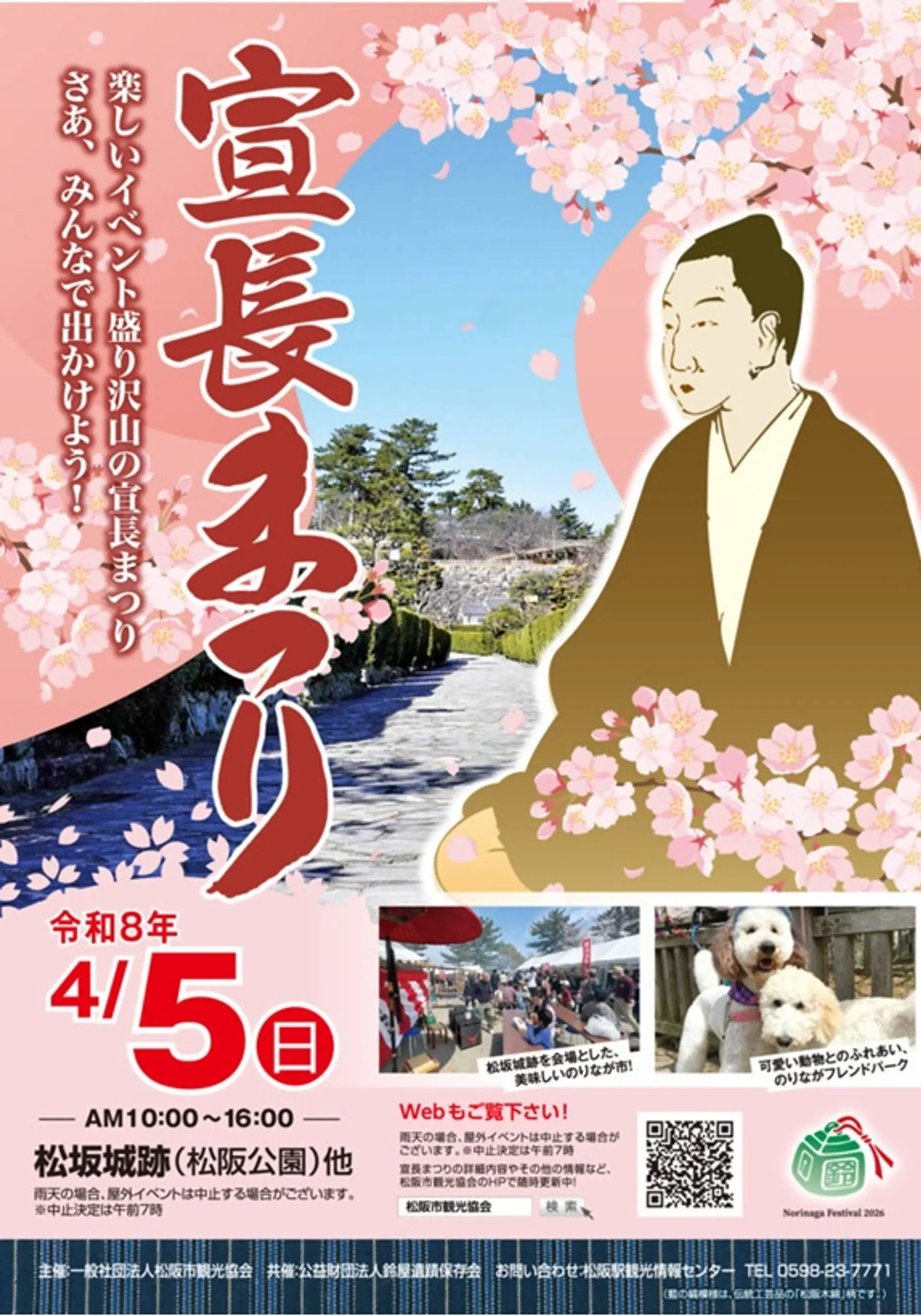 桜の花が咲く中で『宣長まつり』が開催されます🌸楽しいイベントやグルメが楽しめるのりなが市も!