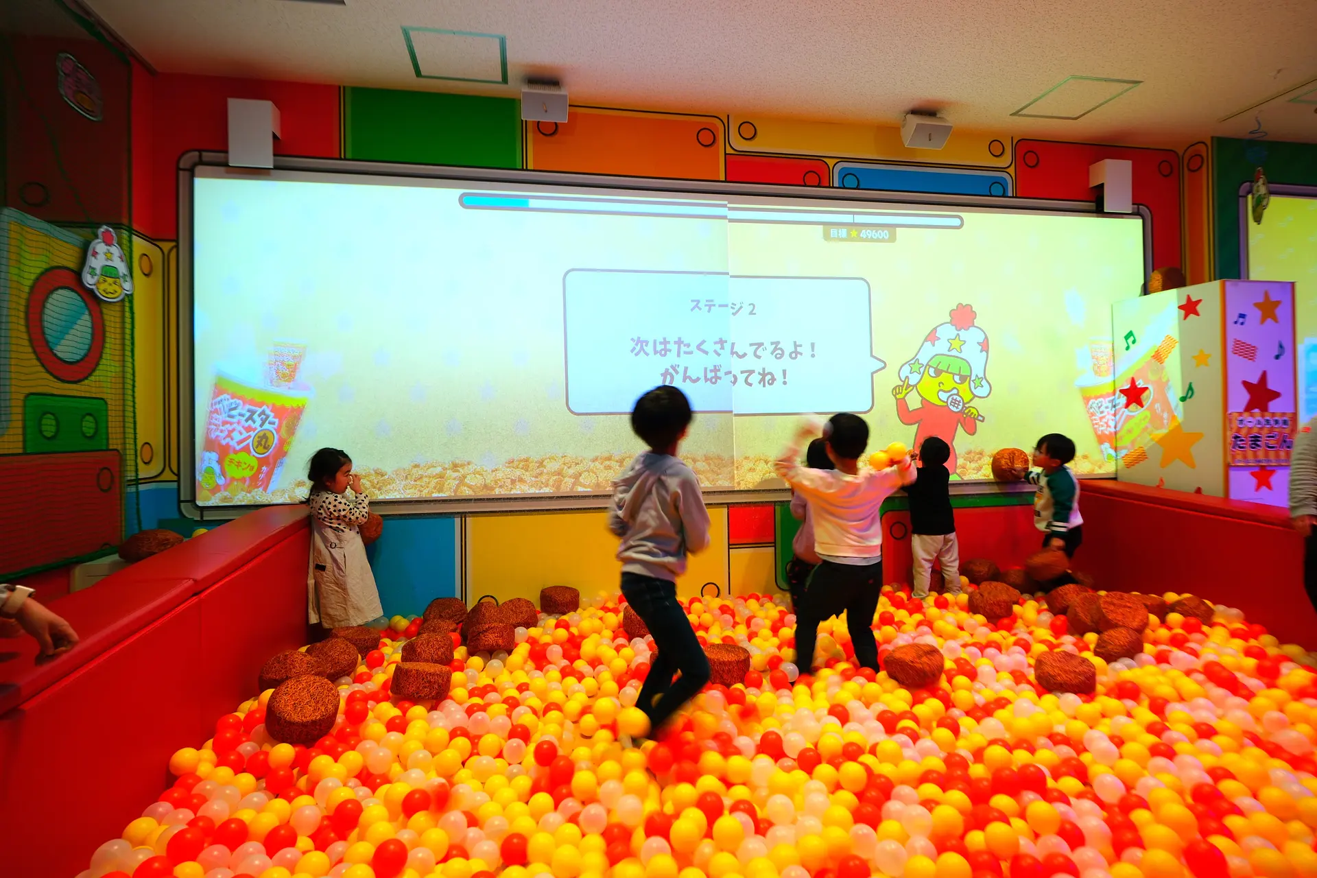 室内型の巨大な遊具で思いっきり遊べるおやつタウン!「ホシオくんドデカイスライダー」「超ドデカイ ブタメンくんアドベンチャー」や、「わくわくネットトランポリン」「超ドデカイアスレチック」など、ワクワクが止まらないアトラクションがいっぱい⭐