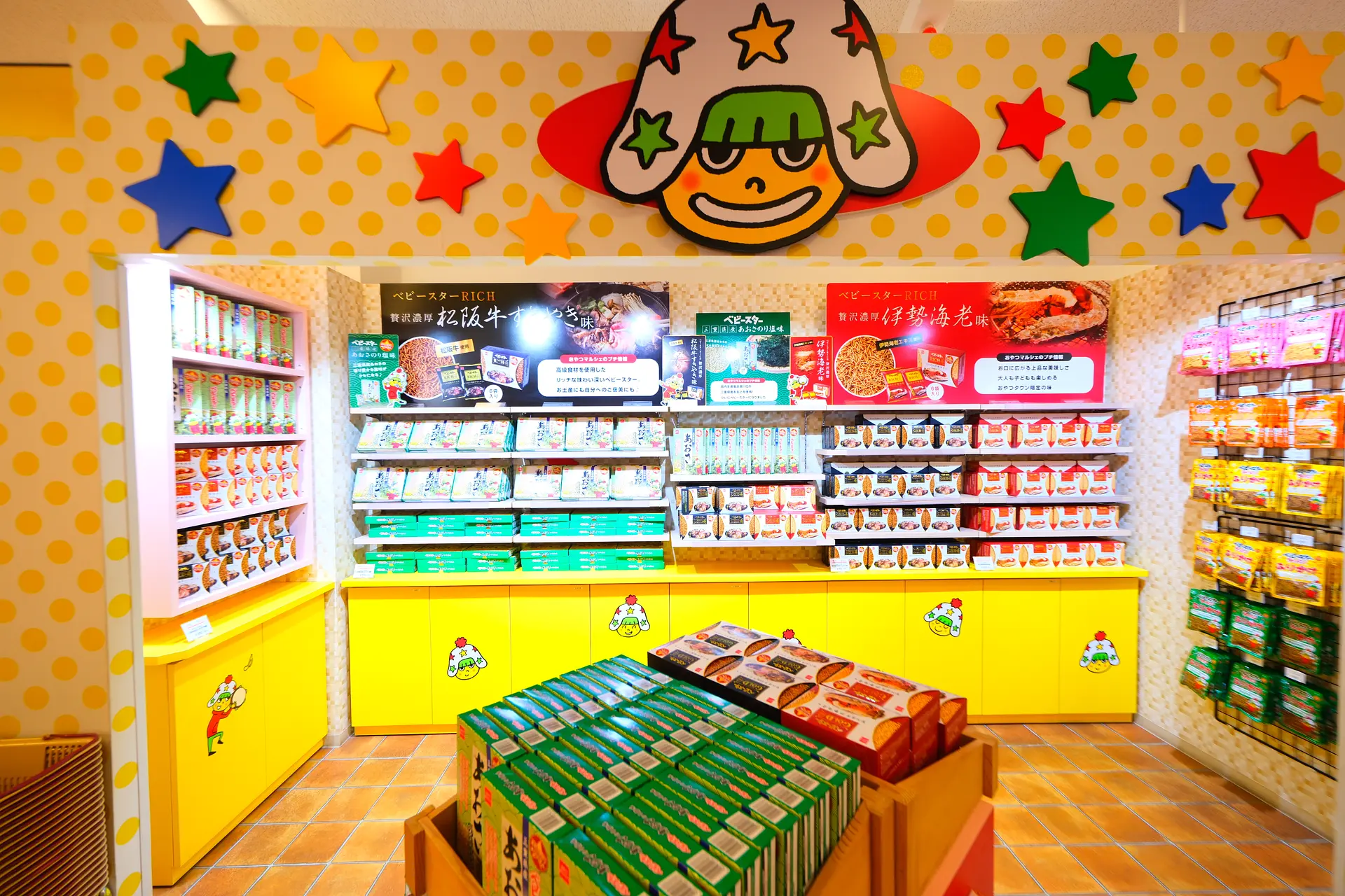 ベビースターはもちろん、オリジナルキャラクターグッズやお土産にピッタリなお菓子など、ショッピングも楽しい!