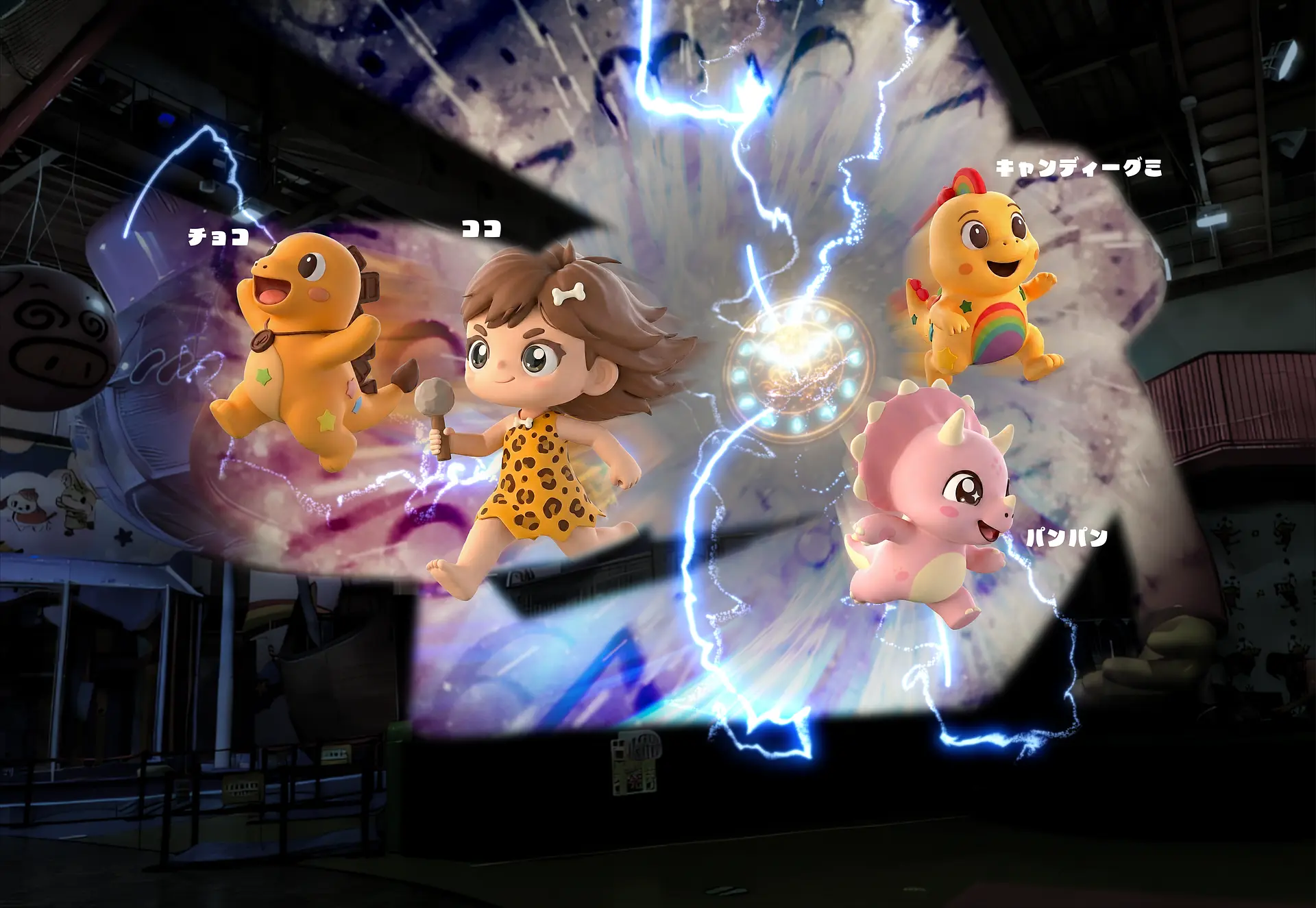 おやつタウンに新登場!参加型エンターテイメント「夢のプロジェクションマッピングショー~恐竜と一緒に・ぴょんぴょんダンス~」で7分間の大冒険へ!