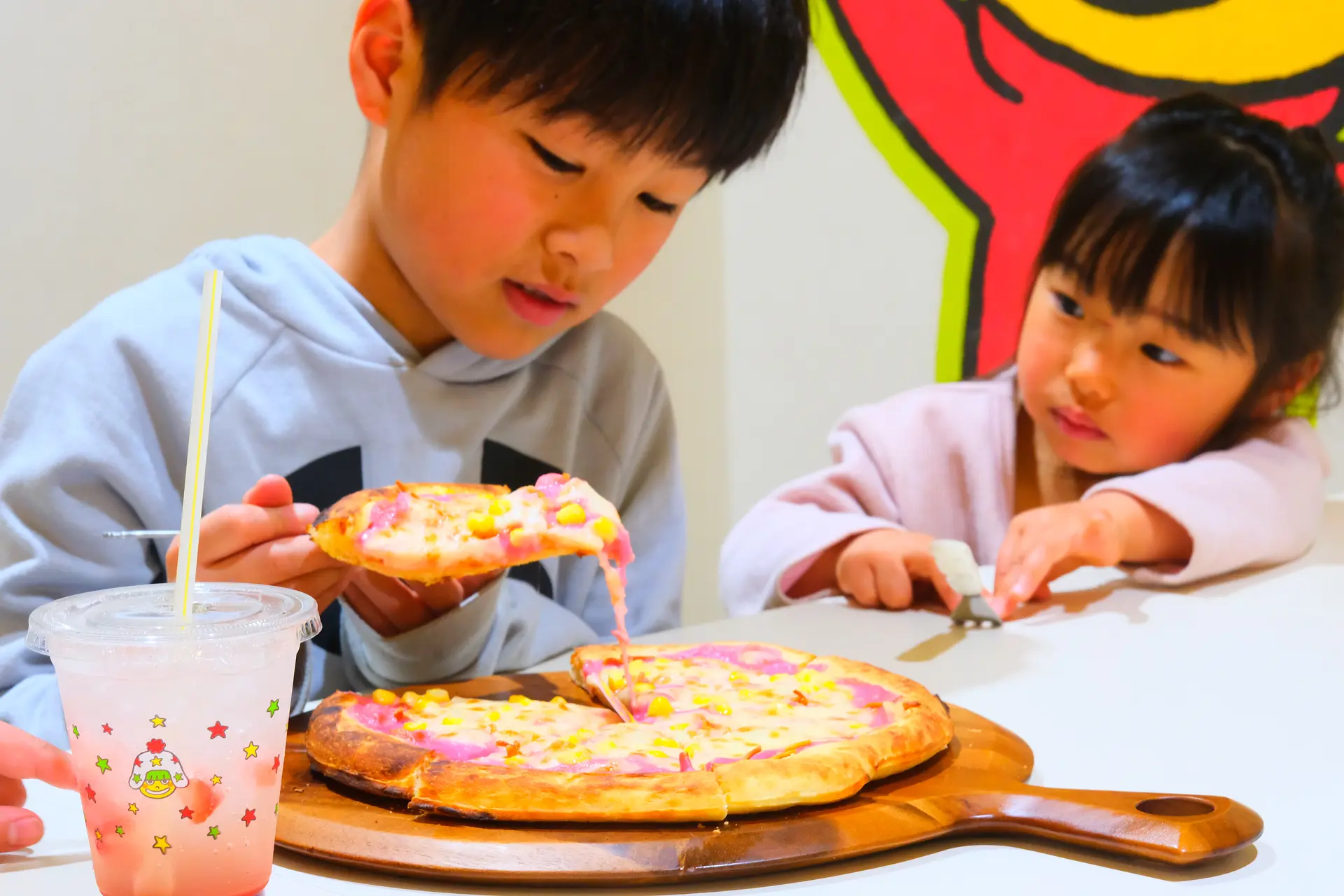 思いっきり遊んだ後は、美味しいピザと爽やかなドリンクで、お腹も心もハッピーに♪
