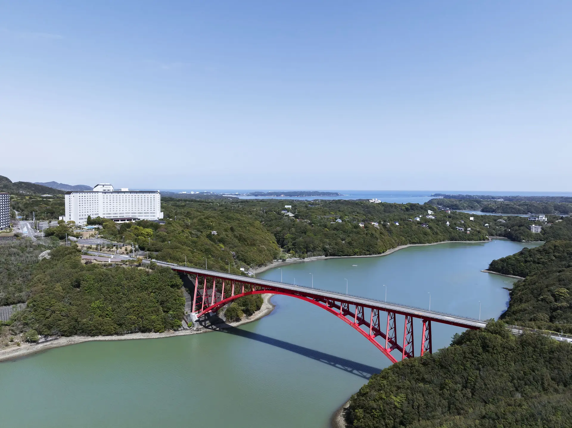 穏やかなリアス海岸と的矢湾に浮かぶ島々という、まるで一幅の絵画のような絶景を眺めながら、オールインクルーシブでゆったりとした時間を楽しめます。「長寿の湯」と称される新美里温泉で心身を癒せるほか、館内には木の温もりにふれられる新キッズスペース「的矢の杜」もオープンしており、ファミリーでのご滞在にもぴったりです。