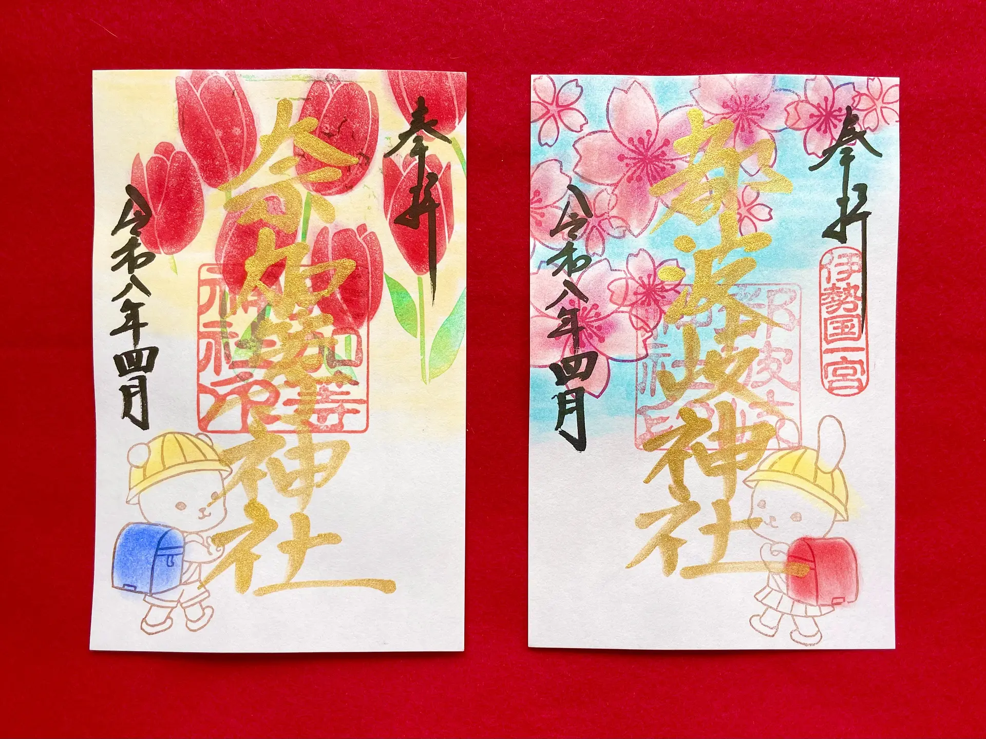 御朱印テーマ 都波岐神社『桜・うさぎ』/奈加等神社『チューリップ・くま』