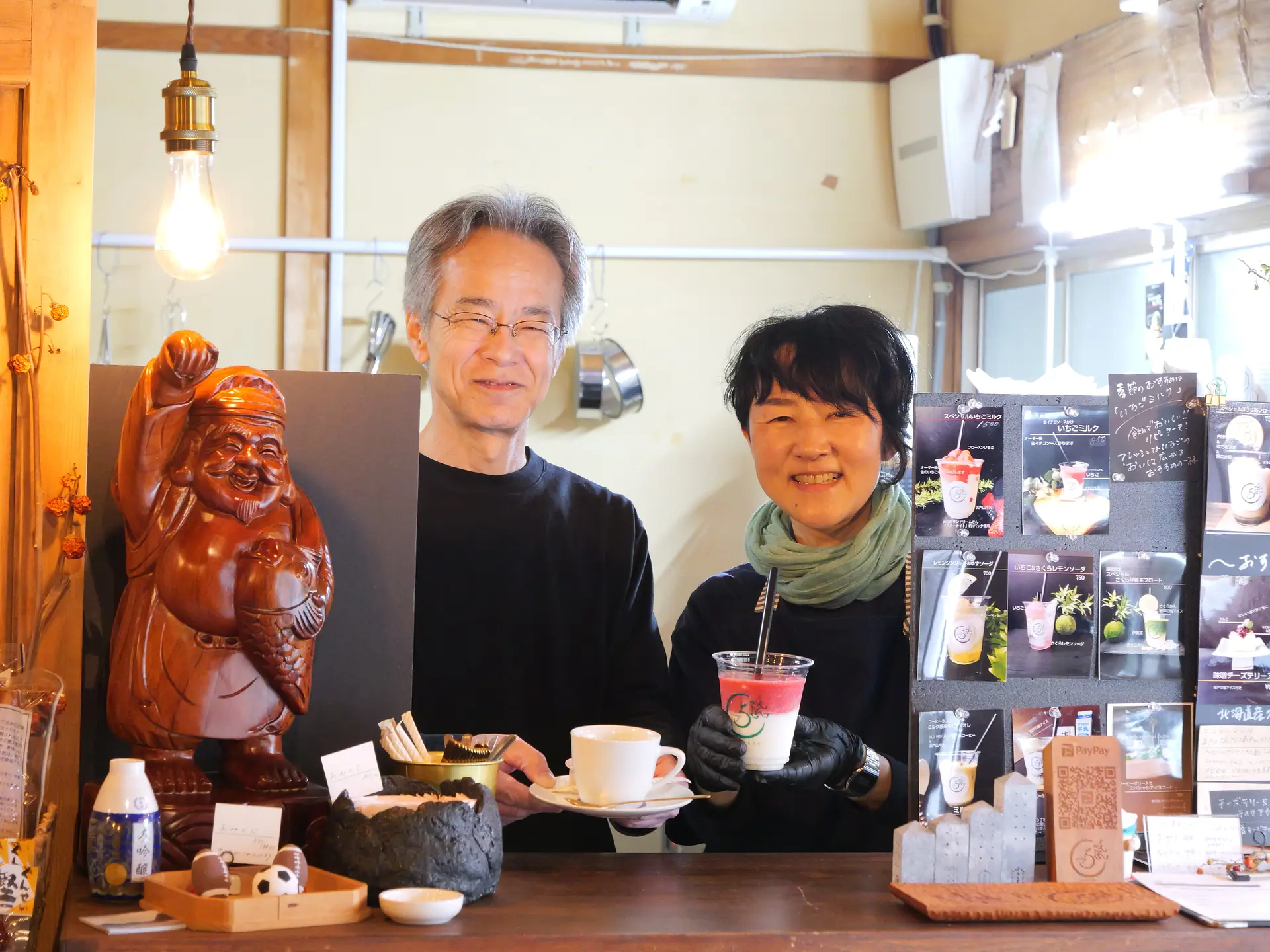 店主が丁寧に淹れるハンドドリップコーヒーは、後味すっきり。ドライブの合間に、ほっとひと息つけますよ。