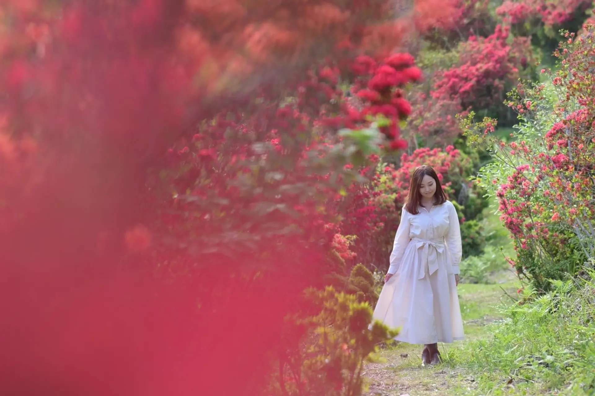 歩きやすく整備された遊歩道に沿って咲く、約1万株のつつじ。