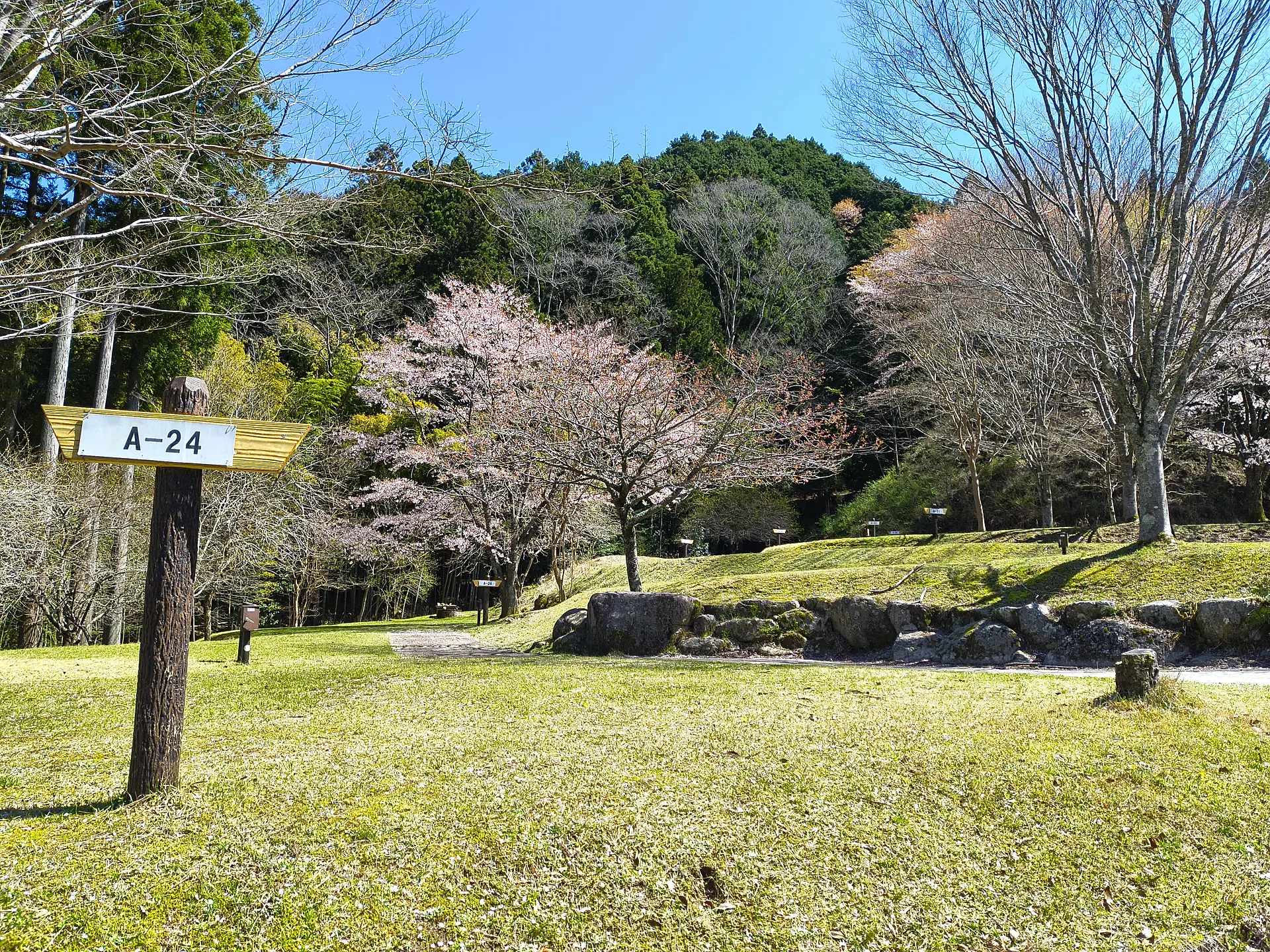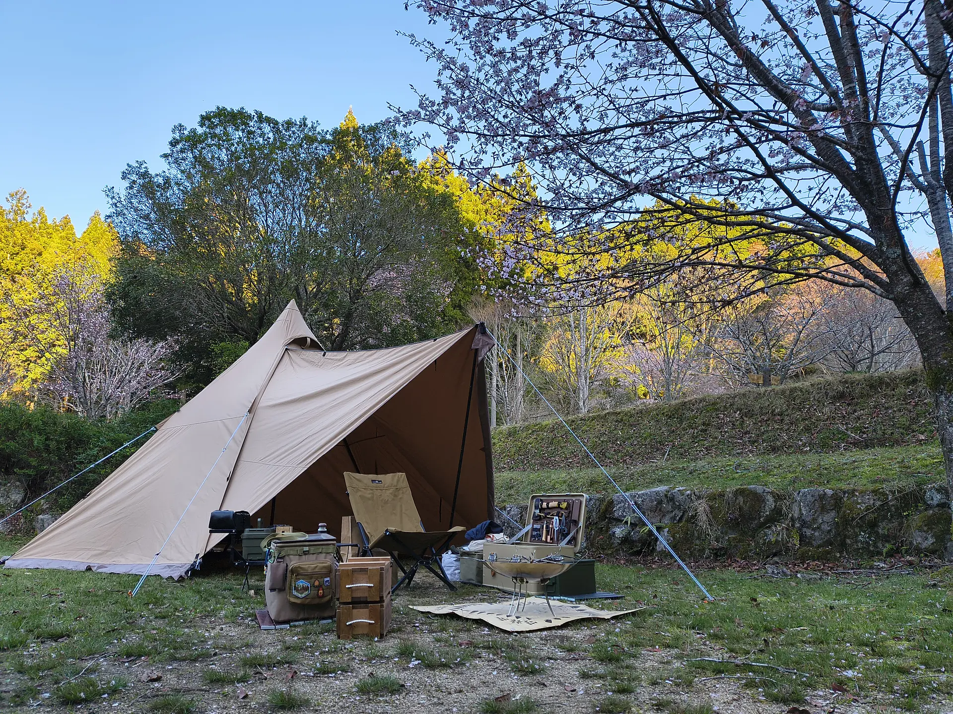 春の桜から秋の金木犀まで、四季折々の自然を楽しめる「ヒストリーパーク塚原オートキャンプ場」。川遊びや昆虫採集など、子どもが夢中になる体験がそろい、ファミリーキャンプにもぴったりです。広いサイトはテント数の制限がないため、ソロやグループでの“ソログルキャンプ”にもおすすめです。