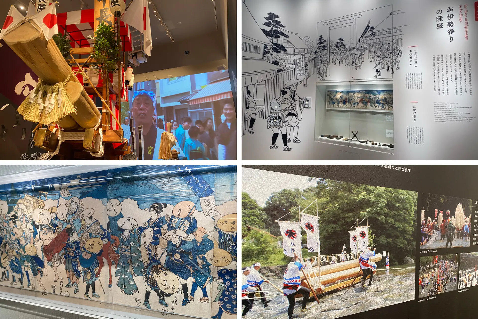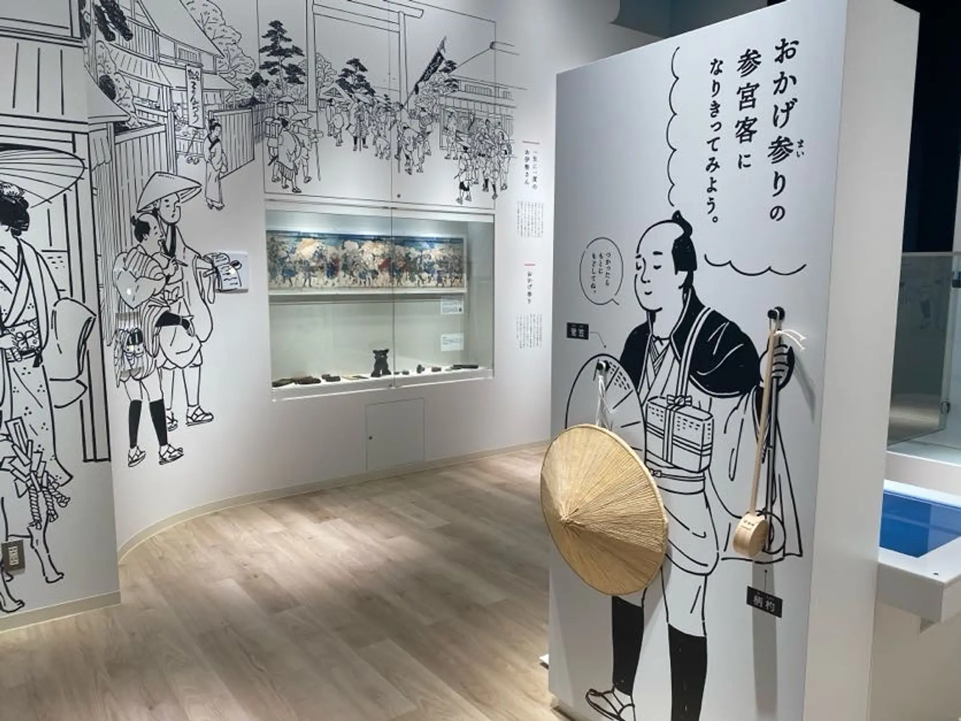 お伊勢参りの歴史的な変遷や、伊勢の風土に育まれた人びとの暮らしやまつりなど、伊勢の歴史と伝統文化を実物資料や映像、体験展示を通じて学ぶことができます。