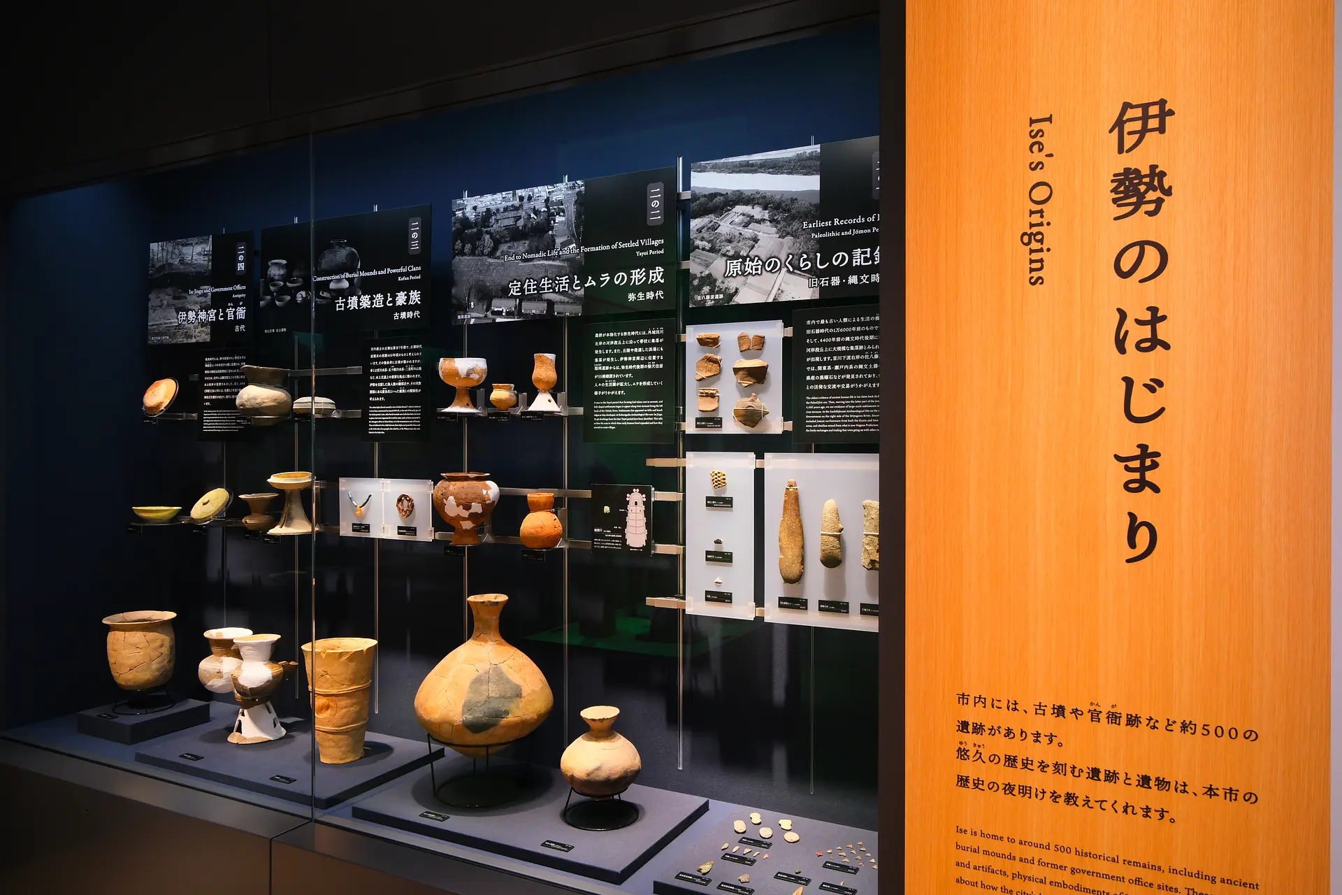約500もの市内の遺跡から出土した遺物を間近に観察したり、昔と現在の地図を比較しながら伊勢市の地形と自然の変遷を視覚で確認したり。古の伊勢市にタイムスリップしたかのように、展示を楽しむことができます。