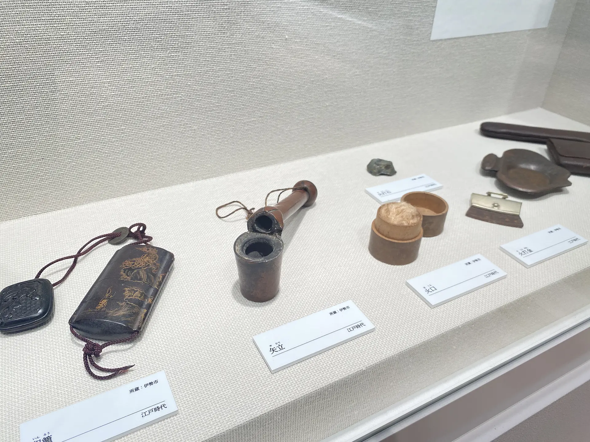 「一生に一度はお伊勢参り」といわれ、江戸時代に庶民の間で流行した「お伊勢参り」。お伊勢参りに関する展示では、伊勢への旅に使われていた筆記用具の「矢立」や、火を起こす際に使用した「火口」などが展示され、参宮客が使った柄杓や菅笠のサンプルを実際に手に取って体験することもできます。