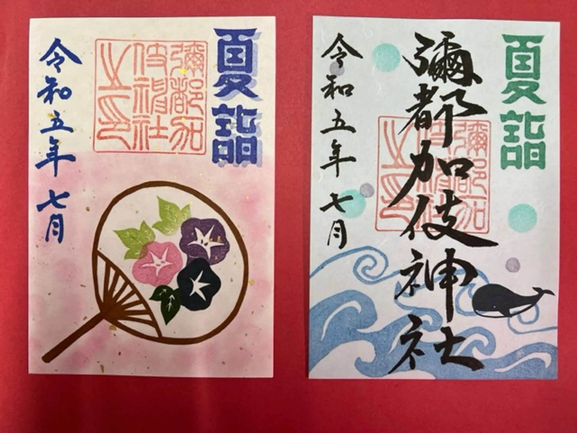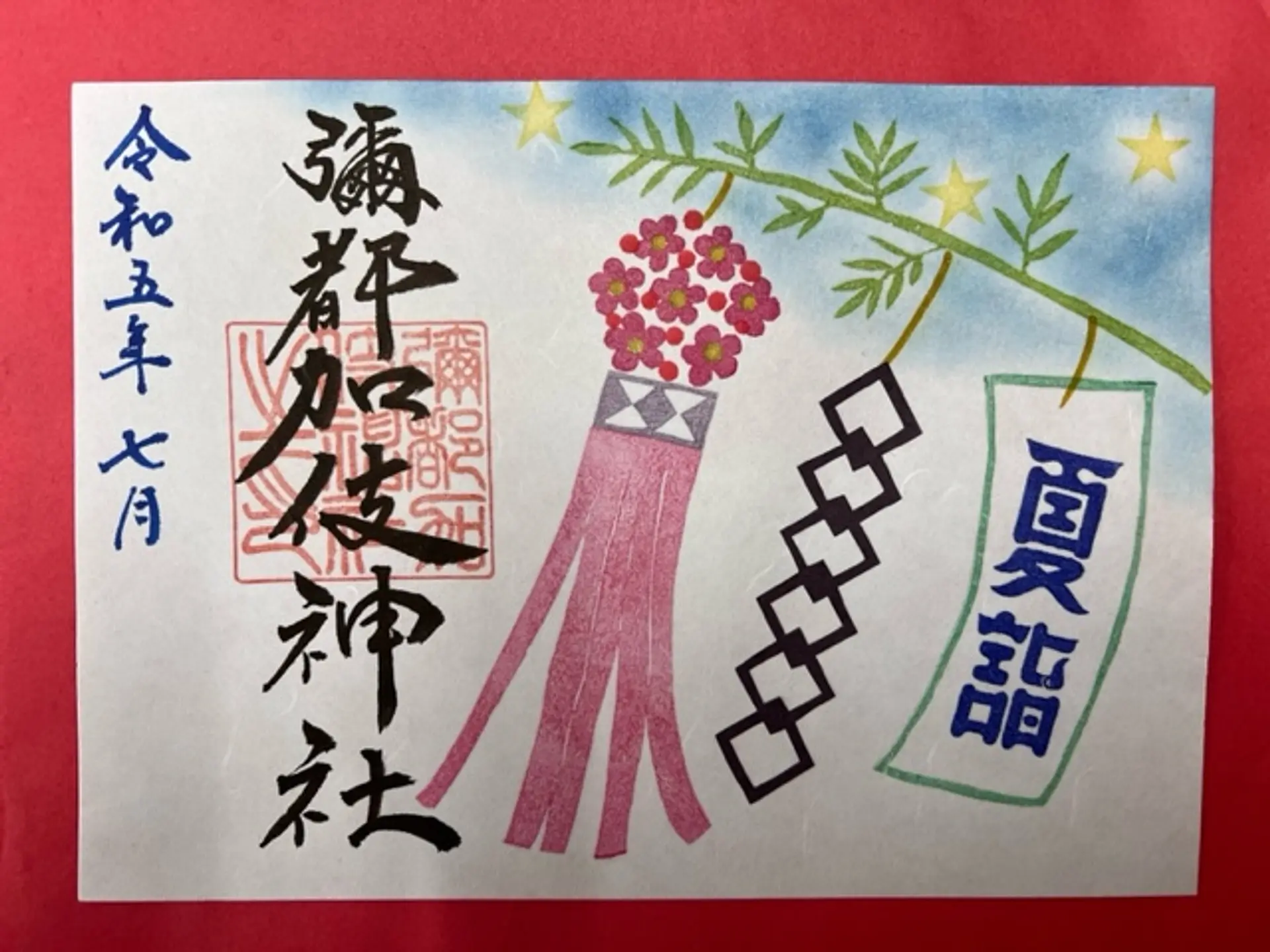 「七夕」、「海の日」、そして季節の花「あさがお」が描かれた7月限定御朱印。夏に神社へ参拝する「夏詣」も押印され夏らしいデザインです♪