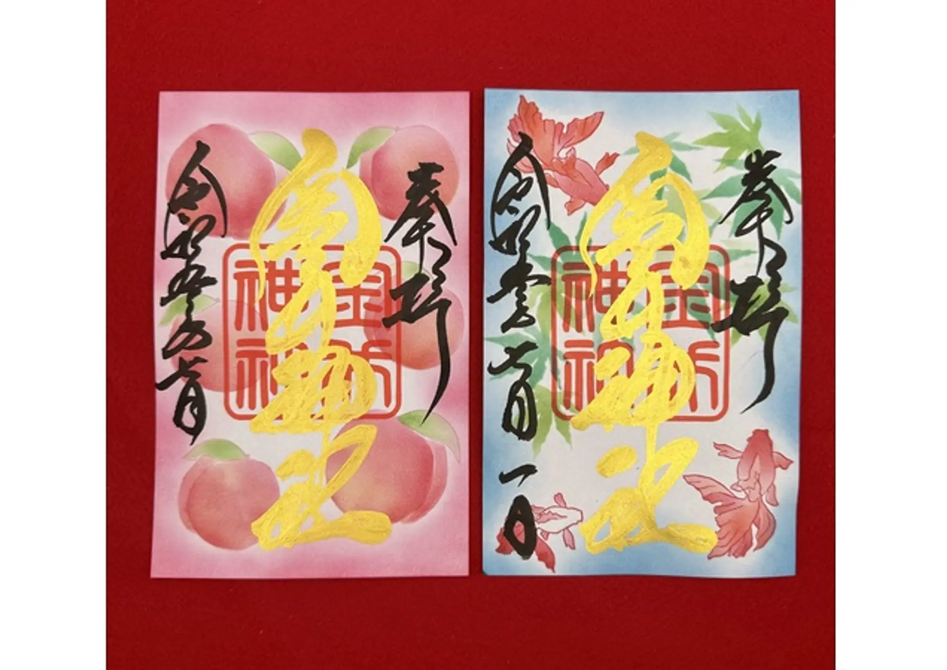初夏に旬を迎える果物「桃」と、涼しげに泳ぐ「金魚」が描かれた7月限定の御朱印。 また、特別御朱印として朝顔の花と七夕がモチーフになった夏詣の御朱印が登場。