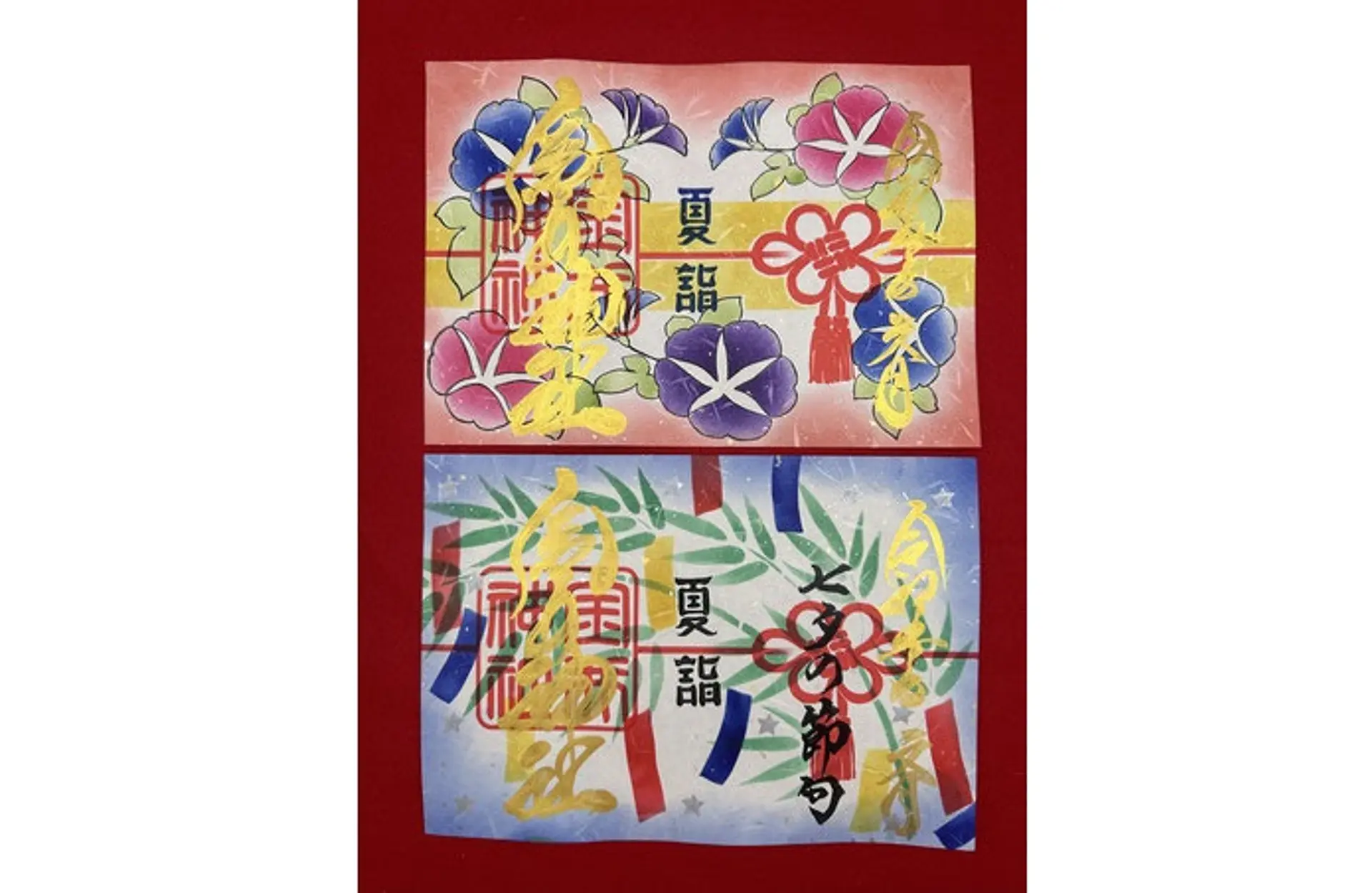 7月限定の御朱印は、七夕の笹飾りや風鈴、季節の花の朝顔などをモチーフにしたデザイン。